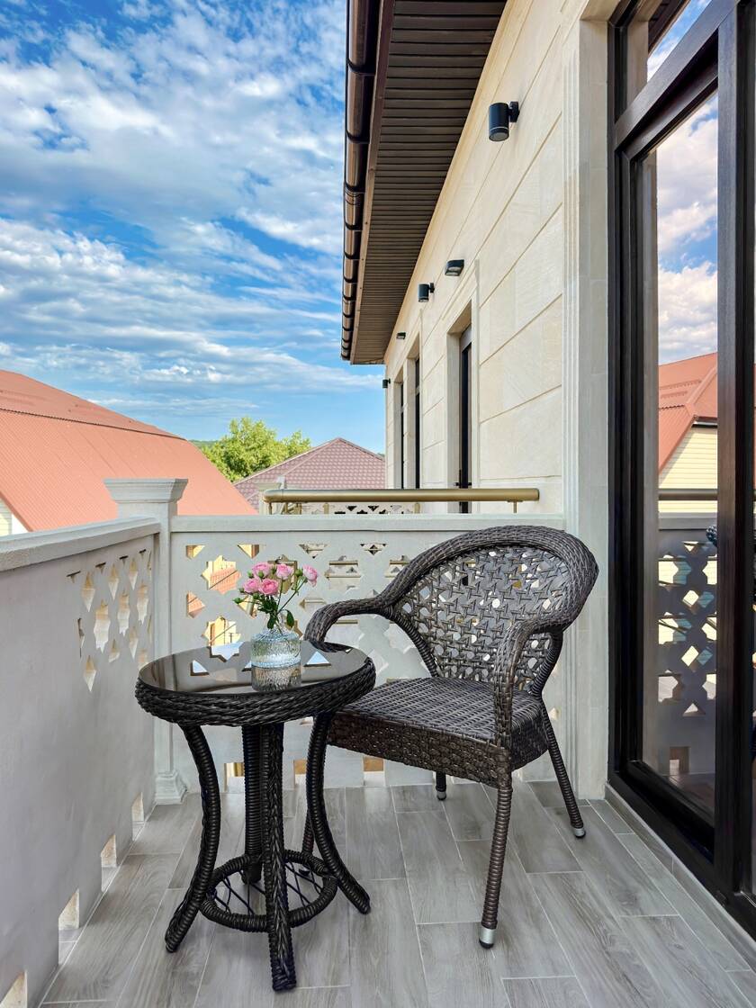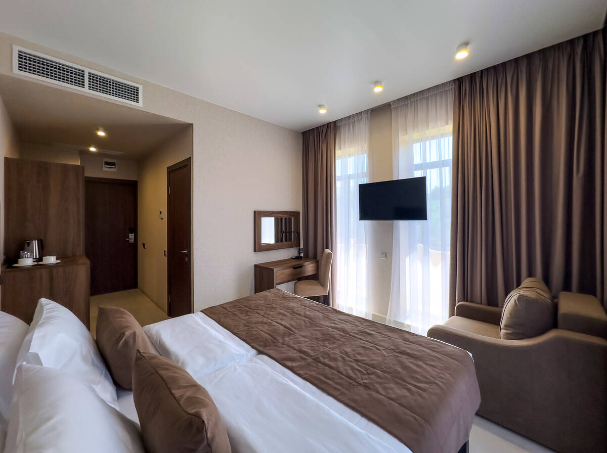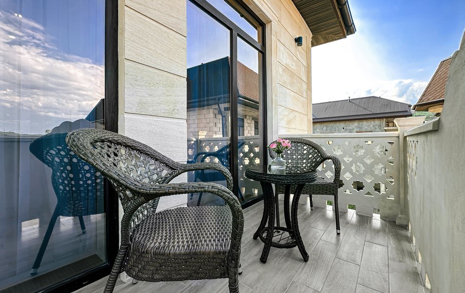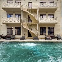 Перед зданием отеля расположена парковка для автомобилей гостей.. В каждом номере установлены кровати, шкафы для одежды, телевизоры, кондиционеры, мини-холодильники, электрочайники и душевые комнаты.Для гостей работает столовая, в которой подают блюда домашней кухни, свежие овощи, фрукты и выпечку. У бассейна расположен бар, где можно отдохнуть и заказать прохладительные напитки.На благоустроенной территории оборудованы открытый бассейн с гидромассажем для взрослых и отдельная детская зона с навесом, шезлонги для отдыха, а также площадки для прогулок.Перед зданием отеля расположена парковка для автомобилей гостей.
