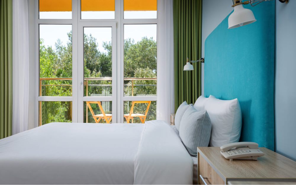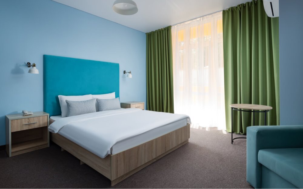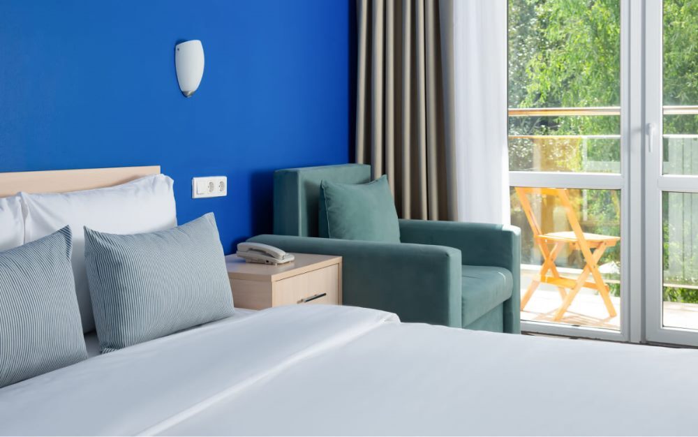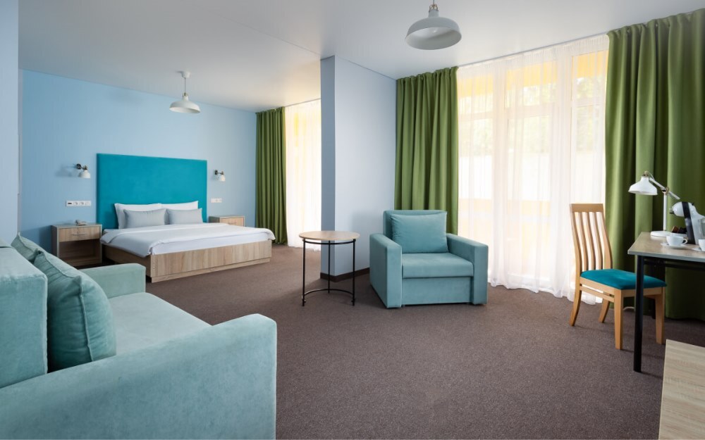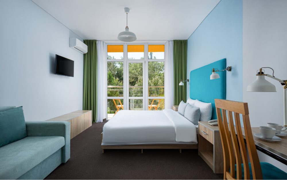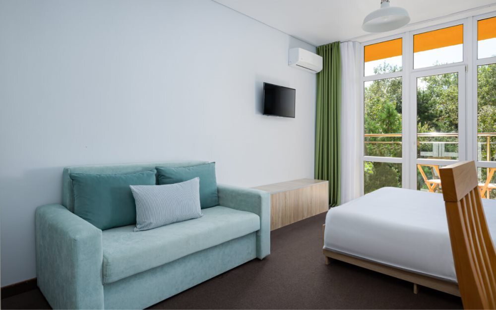 Отель оформлен в ярком современном стиле, на территории находятся 2 корпуса – «Море» и «Лето». Питание организовано по системе «шведский стол» и мы готовы удовлетворить гастрономические потребности каждого. Для детей у нас предусмотрены несколько видов блюд , приготовленных на пару, без добавления масла.