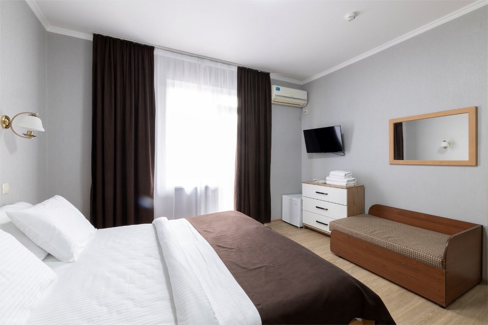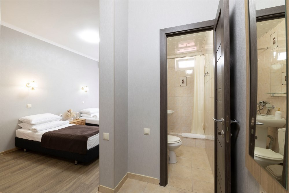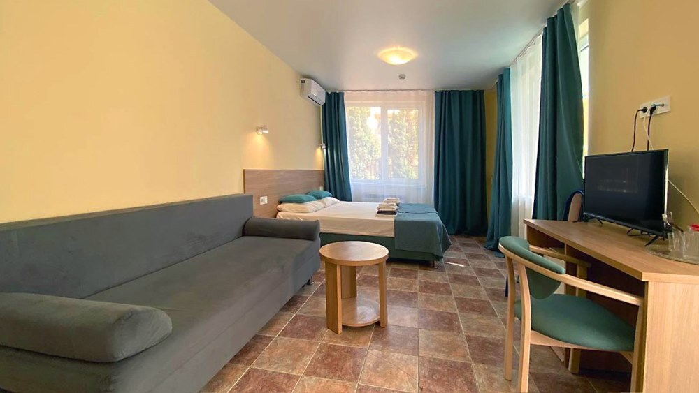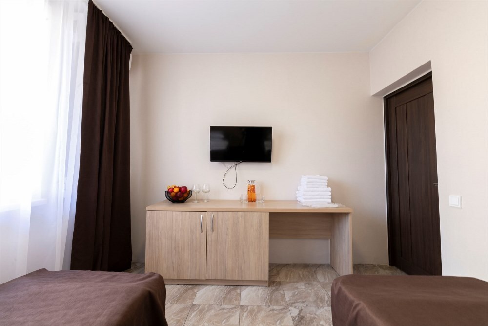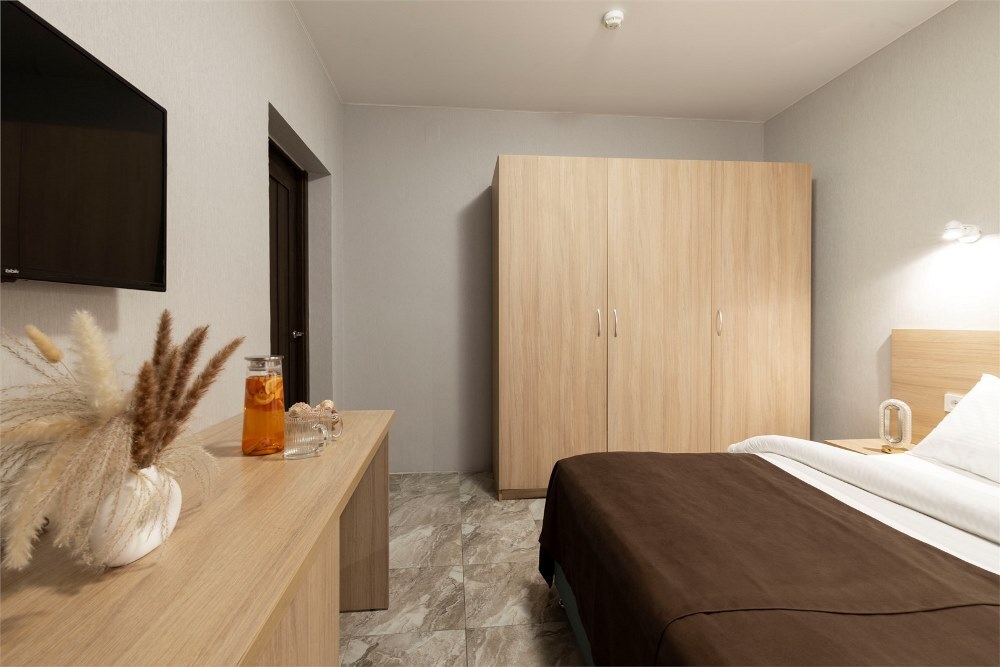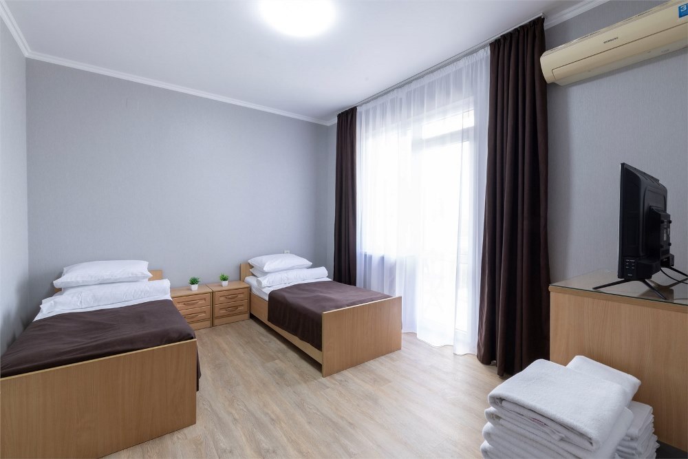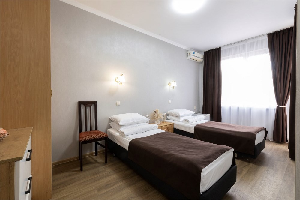 Гости могут выбрать любую из категорий номеров: от двухместных, до четырёхместных.