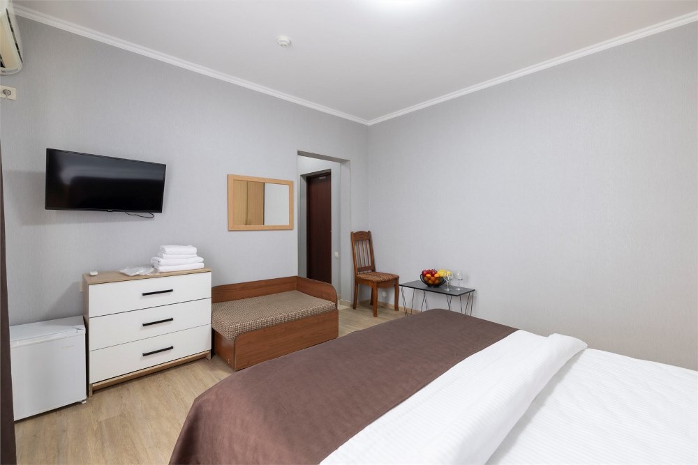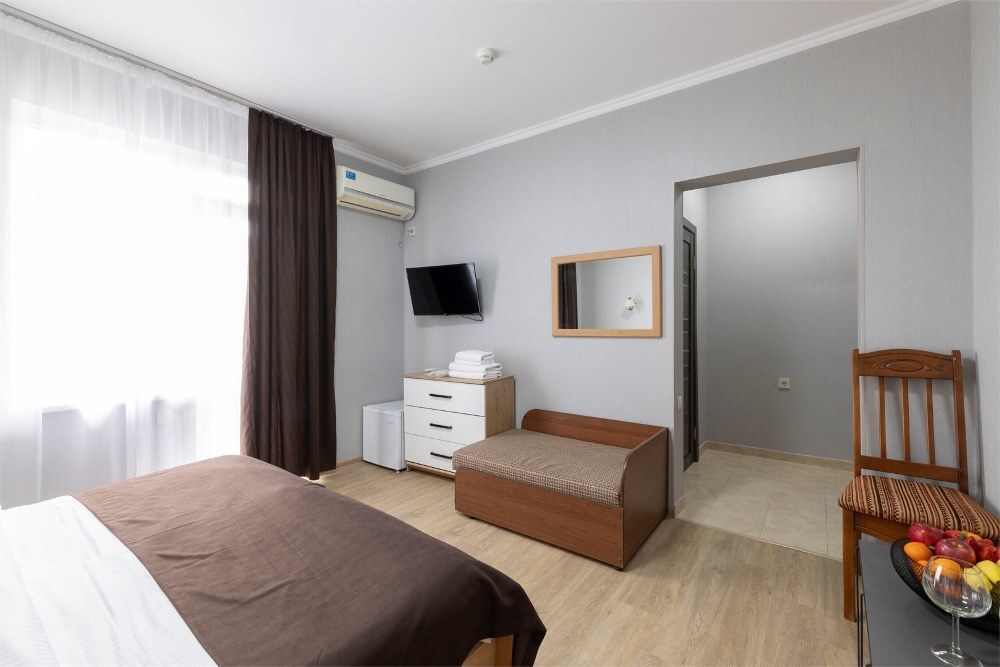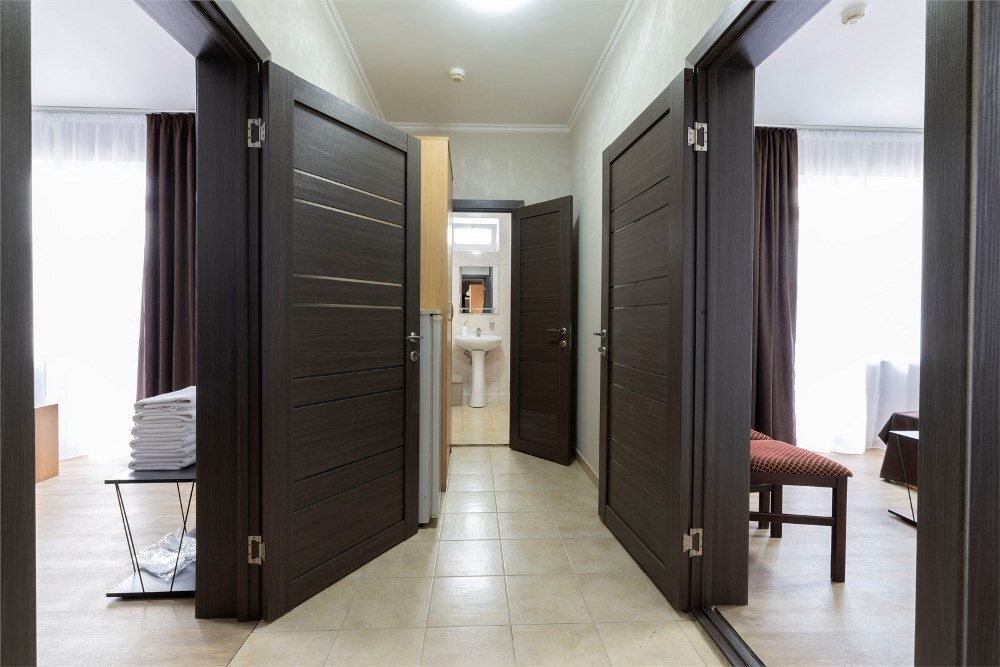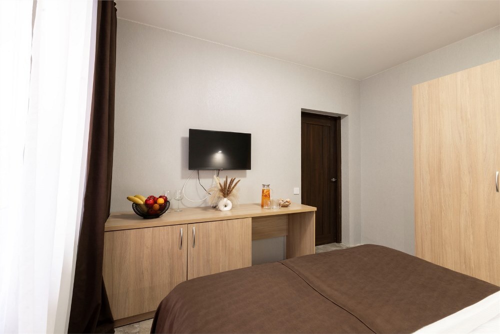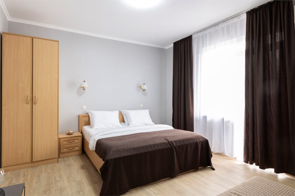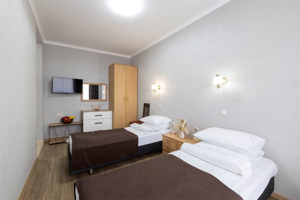 Гости могут выбрать любую из категорий номеров: от двухместных, до четырёхместных.