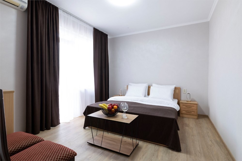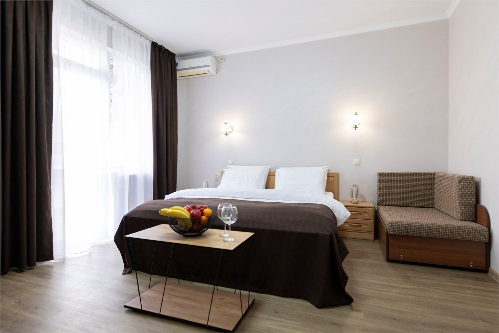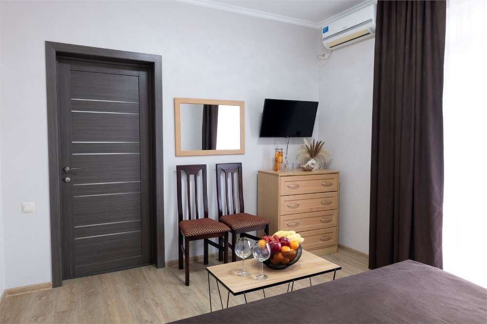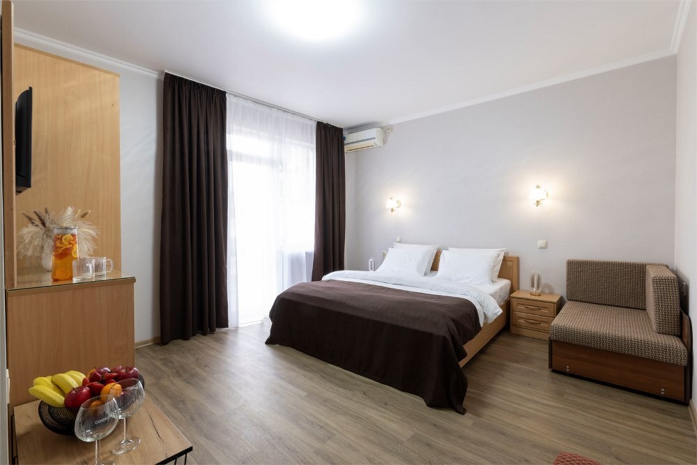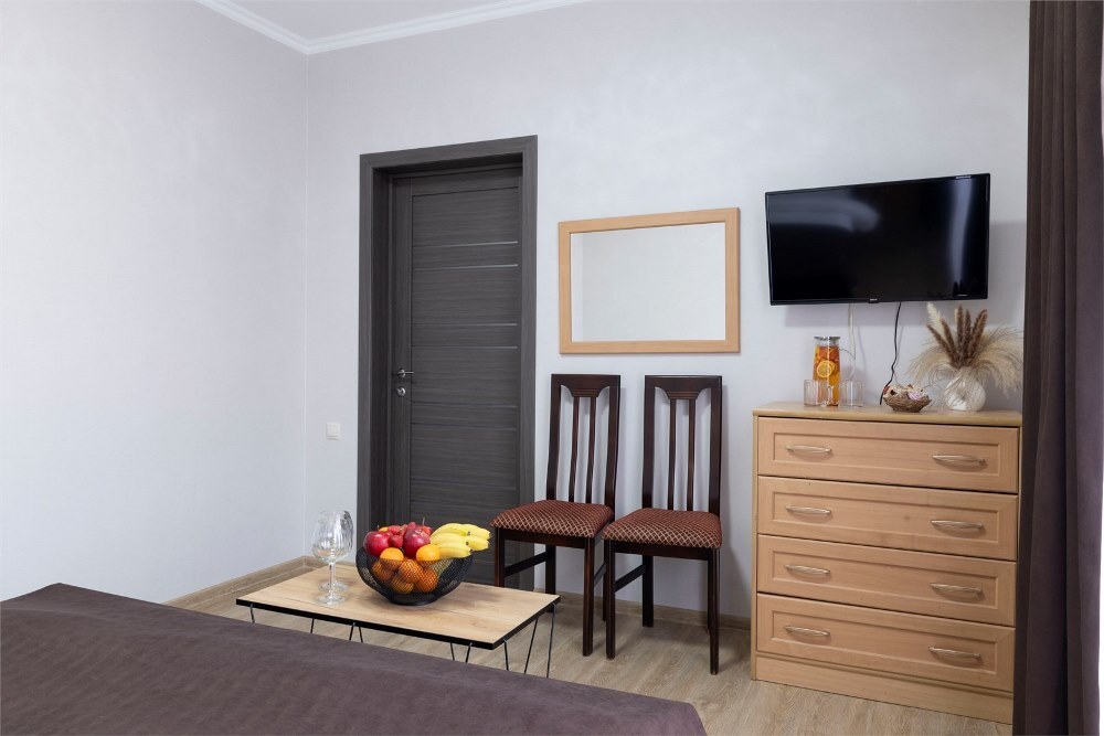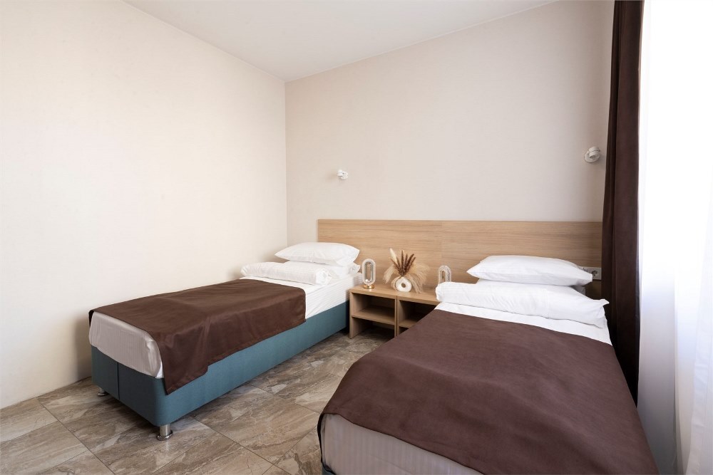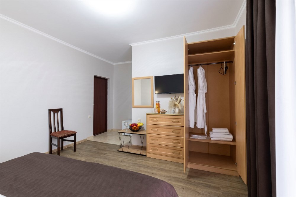 Гости могут выбрать любую из категорий номеров: от двухместных, до четырёхместных.
