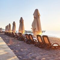 В 600 метрах от отеля расположен песчаный пляж и ласковое море. Благоустроенный пляж оборудован зоной лежаков под навесами, туалетами, душевыми, раздевалками. Работает спасательный и медицинский посты. По пляжу есть деревянные дорожки. Имеется оборудованное место для курения и питьевая вода.