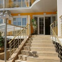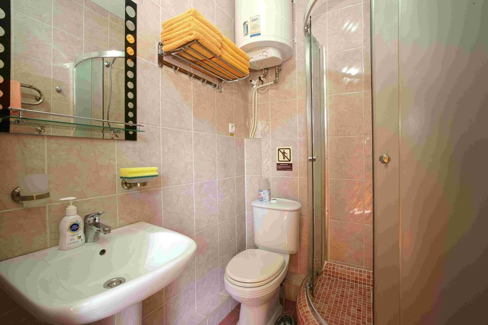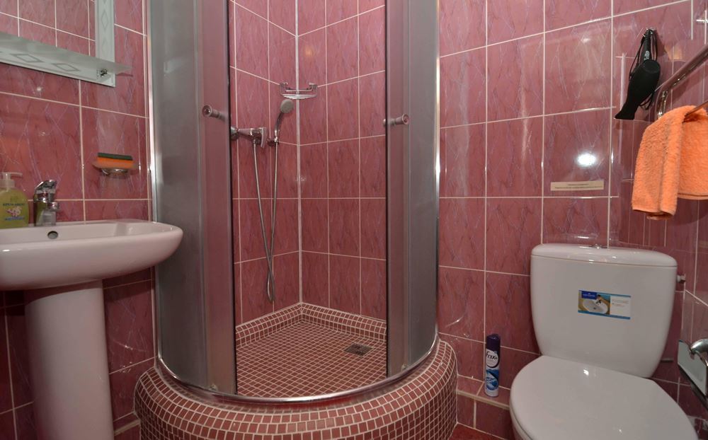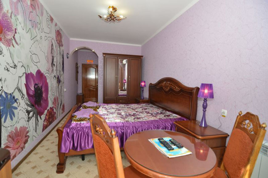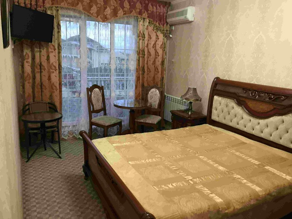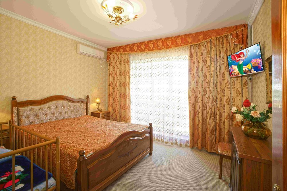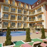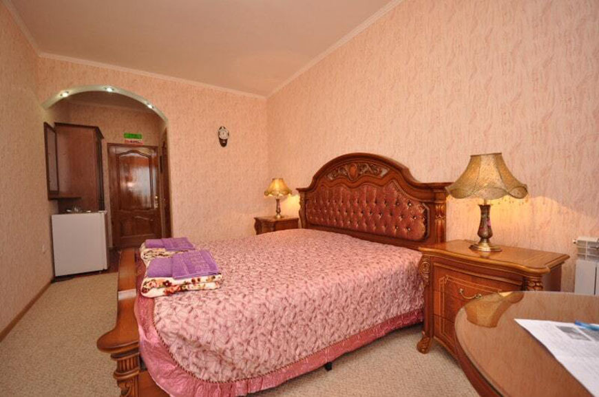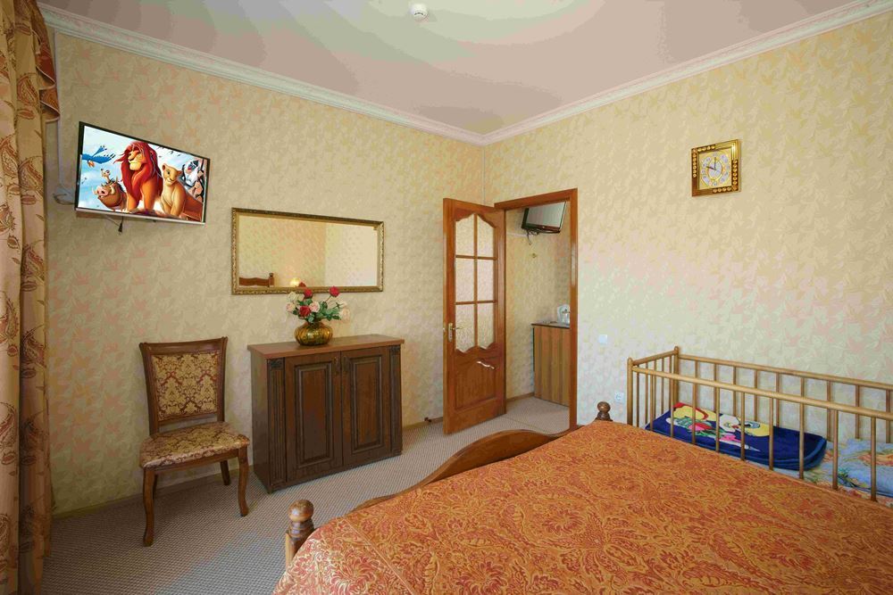 Четырехэтажный корпус отеля занимает небольшую закрытую территорию в 600 метрах от моря. Просторный жилой фонд предлагает однокомнатные и двухкомнатные номера со всеми удобствами. В каждом номере предусмотрен санузел с душем, есть кондиционер, отлично справляющийся с крымской жарой, телевизор и холодильник.