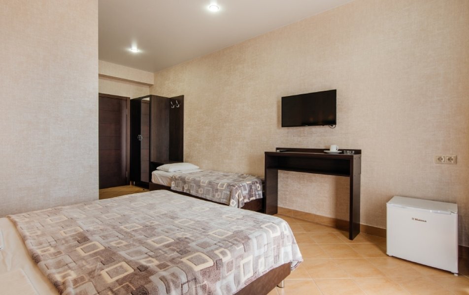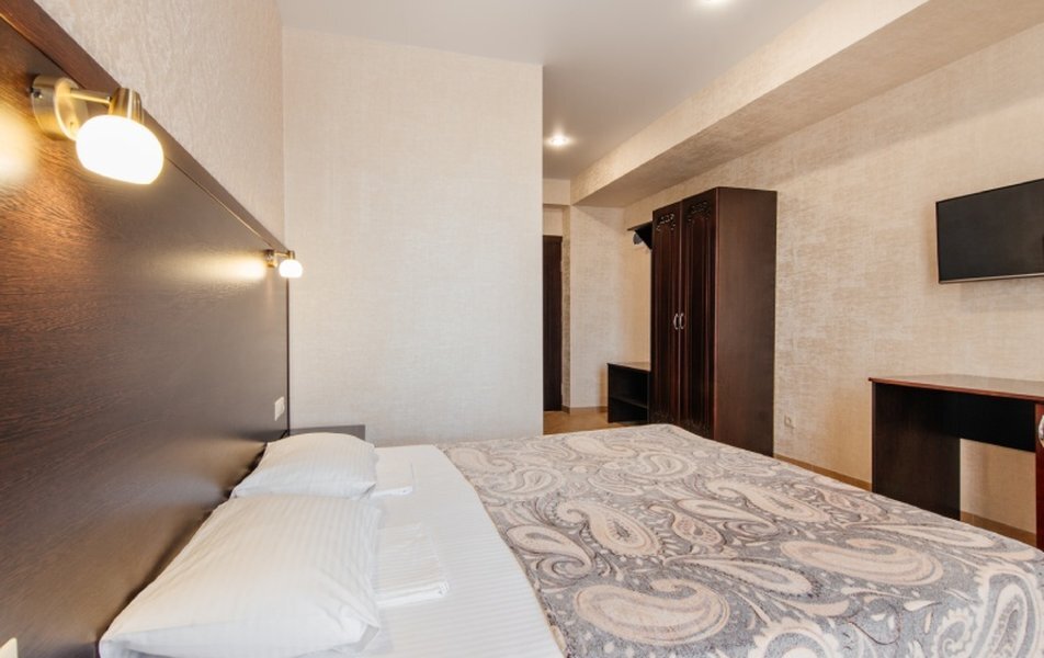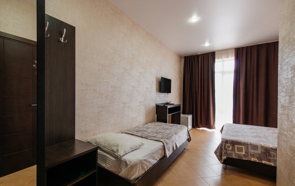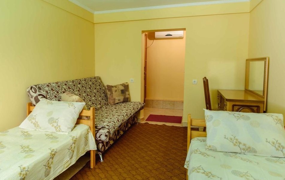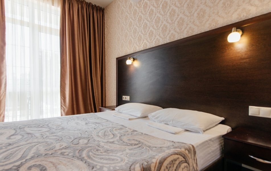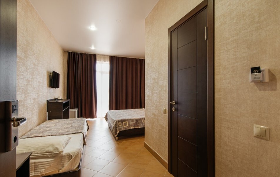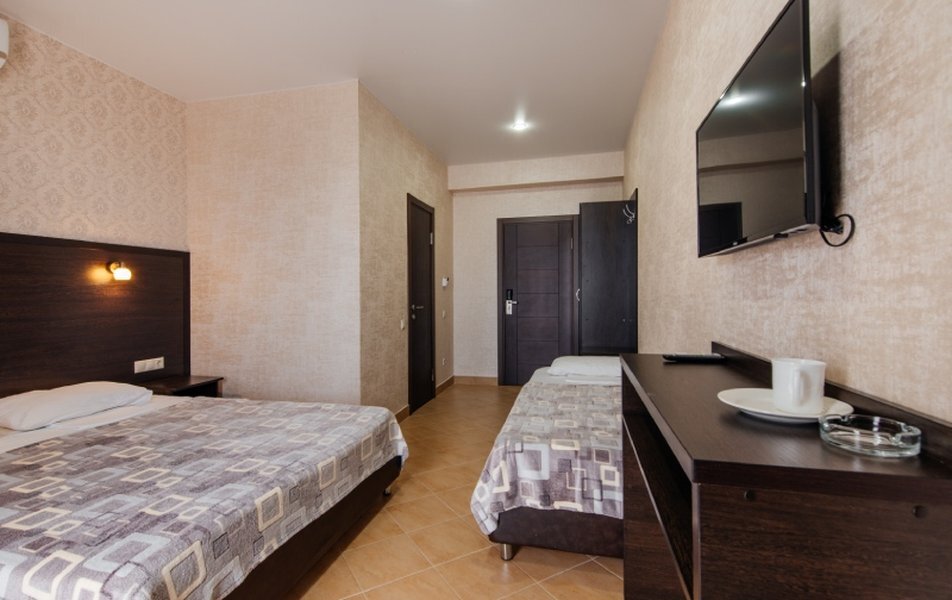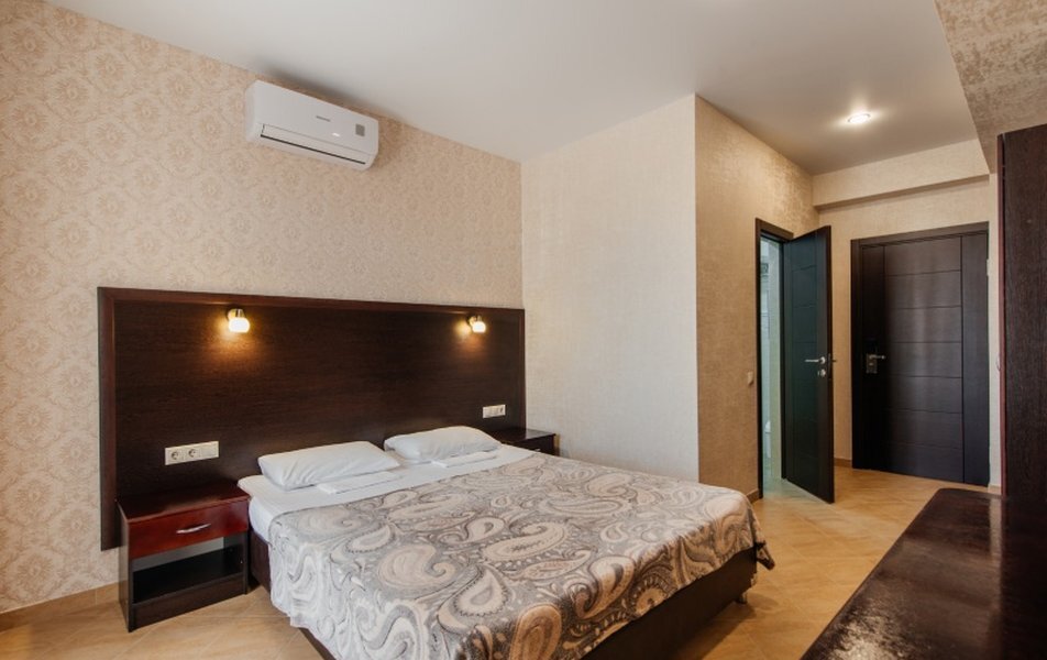 Пятиэтажный корпус отеля занимает закрытую территорию площадью 1000 кв.м. Гостей ожидают стандартные номера, каждый из которых рассчитан на 2-х, 3-х или 4-х человек. В номерах светлый современный интерьер, везде имеется индивидуальный санузел, кондиционер и необходимая бытовая техника.