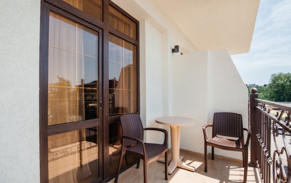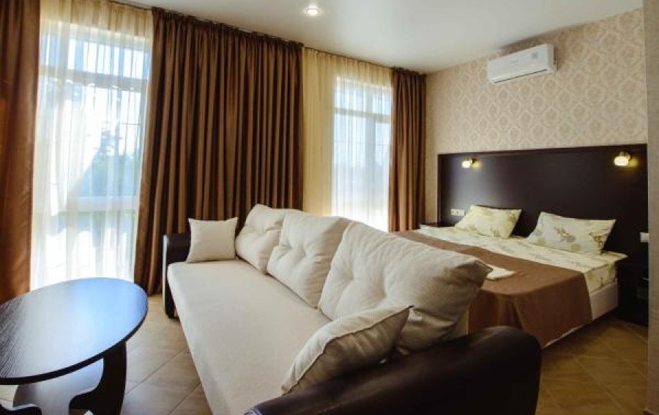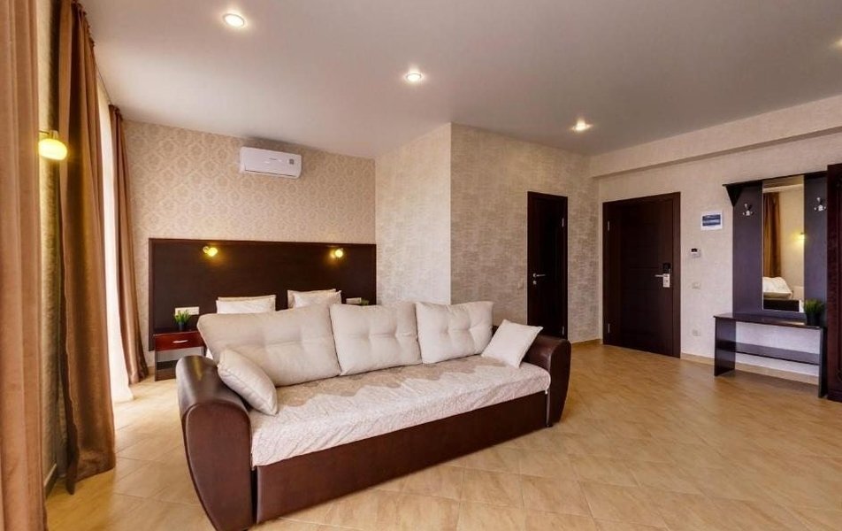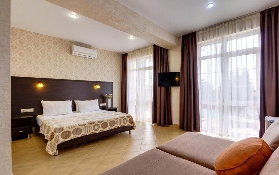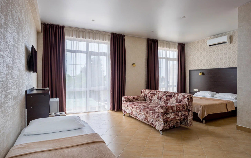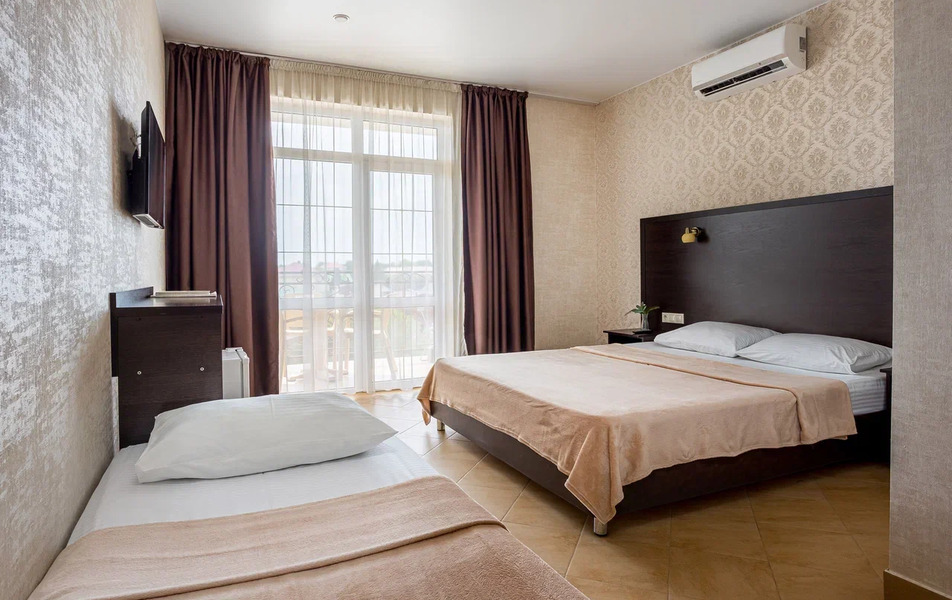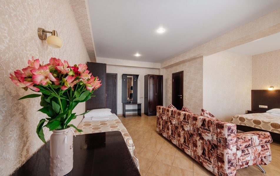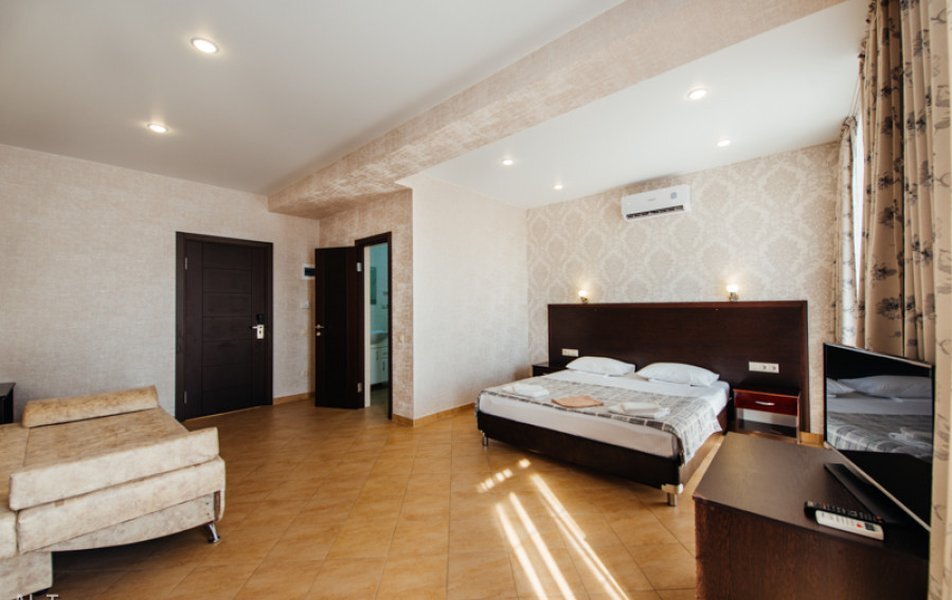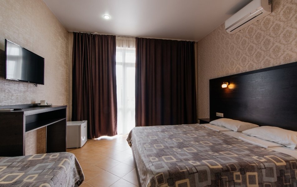 Пятиэтажный корпус отеля занимает закрытую территорию площадью 1000 кв.м. Гостей ожидают стандартные номера, каждый из которых рассчитан на 2-х, 3-х или 4-х человек. В номерах светлый современный интерьер, везде имеется индивидуальный санузел, кондиционер и необходимая бытовая техника.