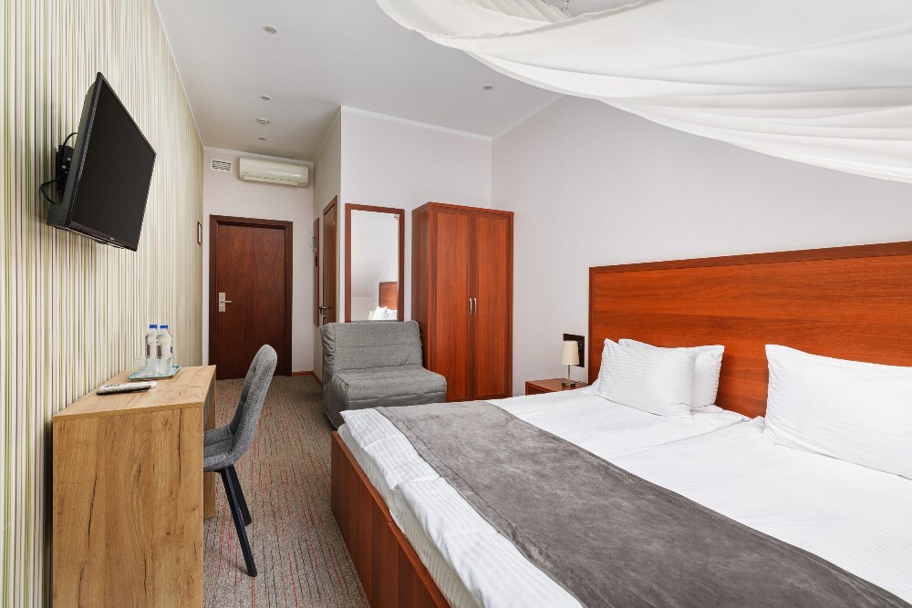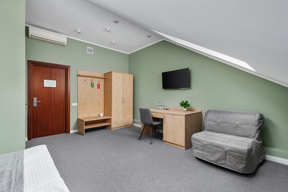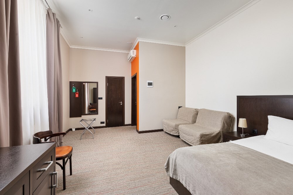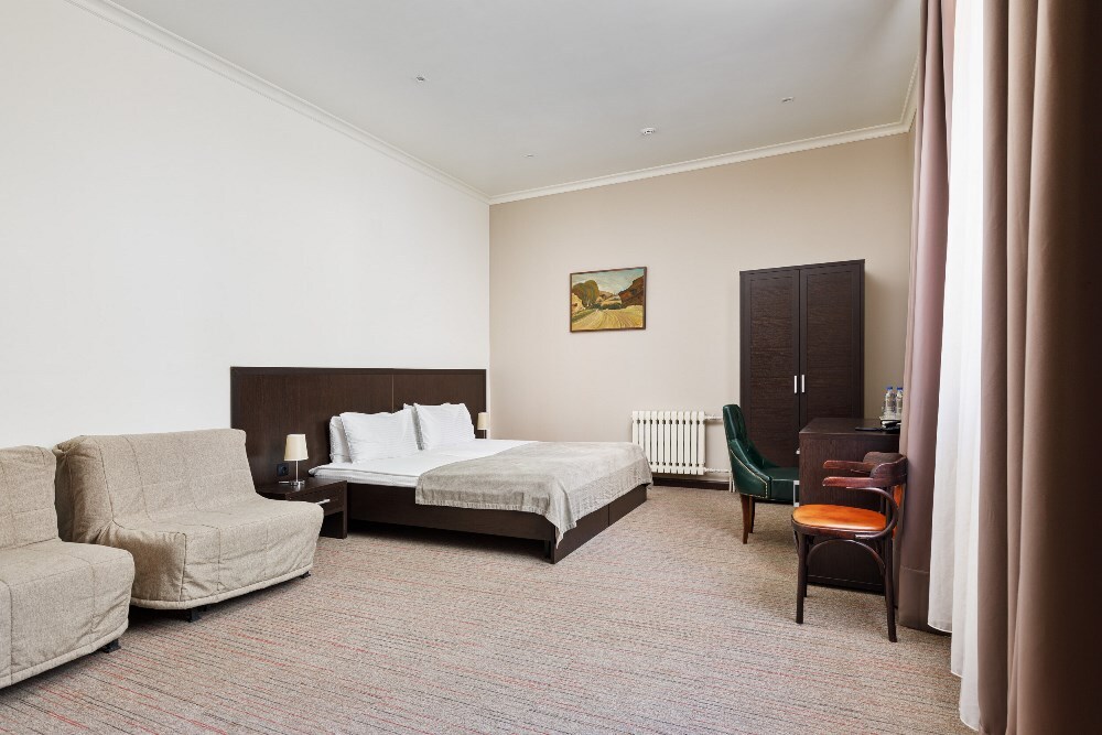 Одноэтажный корпус отеля разместился в квартале между Новоспасским проспектом и Марксистской улицей. Гостей ожидают 20 комфортабельных номеров. Все номера оснащены индивидуальным кондиционером, плазменным телевизором, есть собственный санузел.