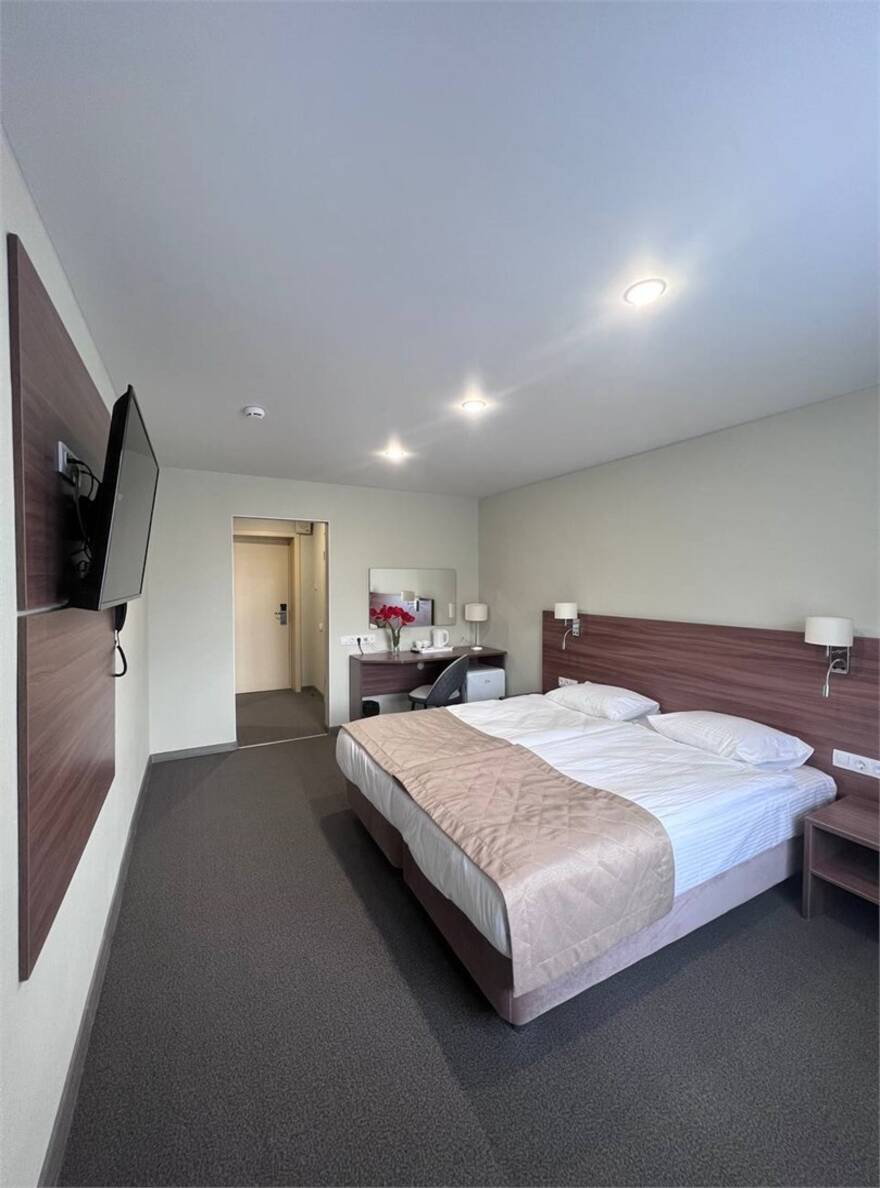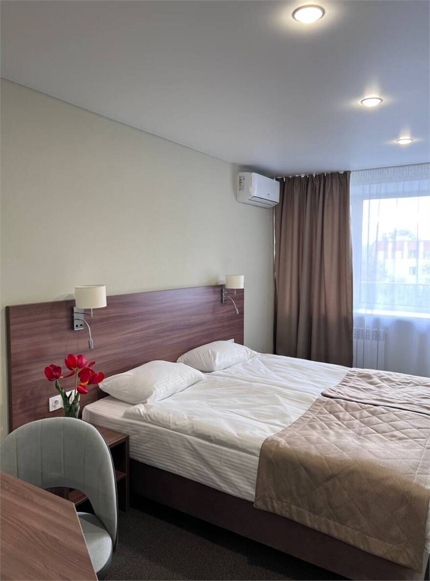 Девятиэтажное здание отеля, оснащенное лифтом, включает в себя 140 номеров различной категории комфорта от Стандарта до Супериора. Одноместные и двухместные номера укомплектованы необходимой мебелью и техникой. В каждом подключена сеть wi-fi, есть санузел с душем или ванной.