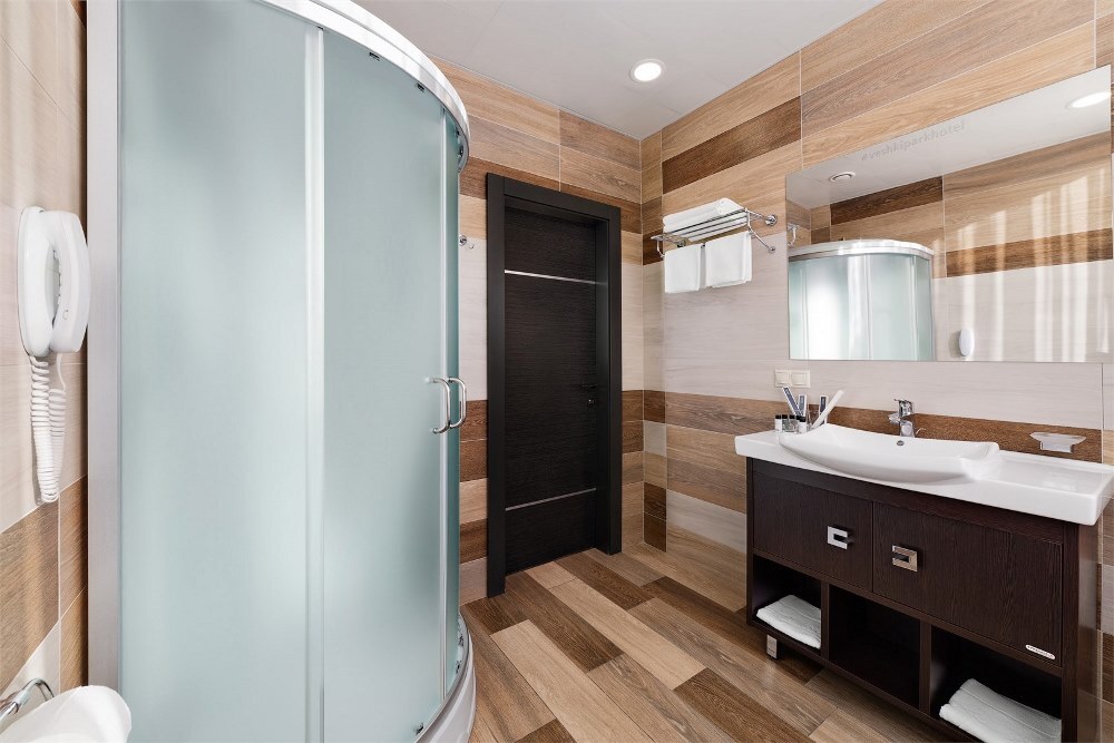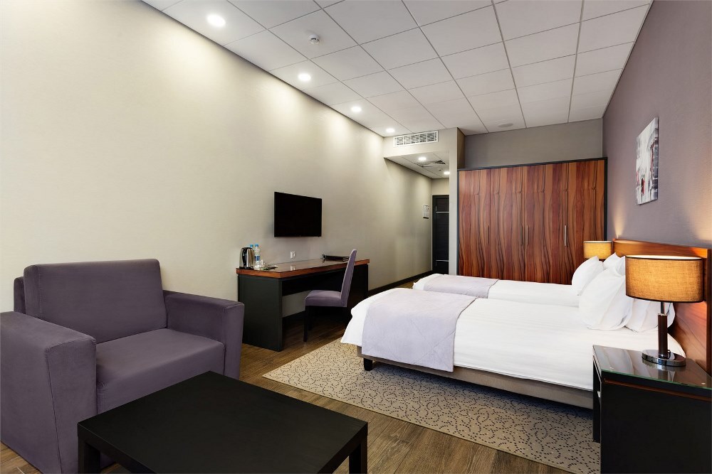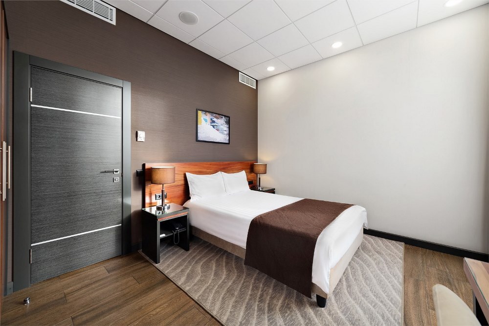 Отель разместился в восьмиэтажном здании, оснащенном лифтами. Жилой фонд рассчитан на единовременное заселение 70 гостей. Отдыхающих ожидают двухместные номера Стандарт, Сьют, Делюкс и Семейный. В номерах современный интерьер, выдержанный в пастельных и шоколадных оттенках. Все комнаты оснащены сплит-системой, ванной комнатой с душем, бытовой техникой.