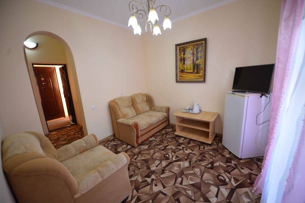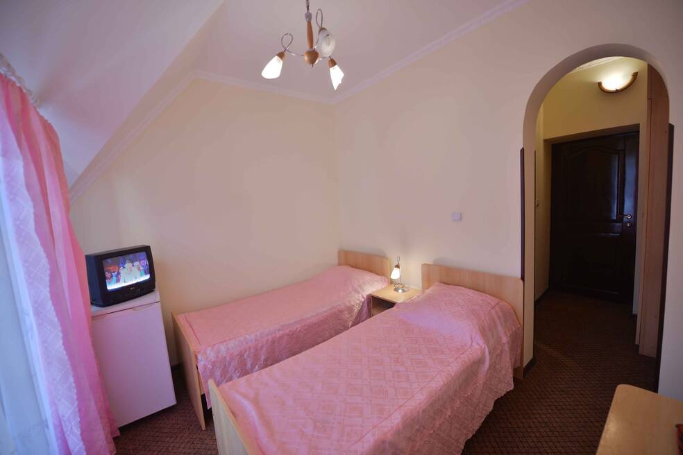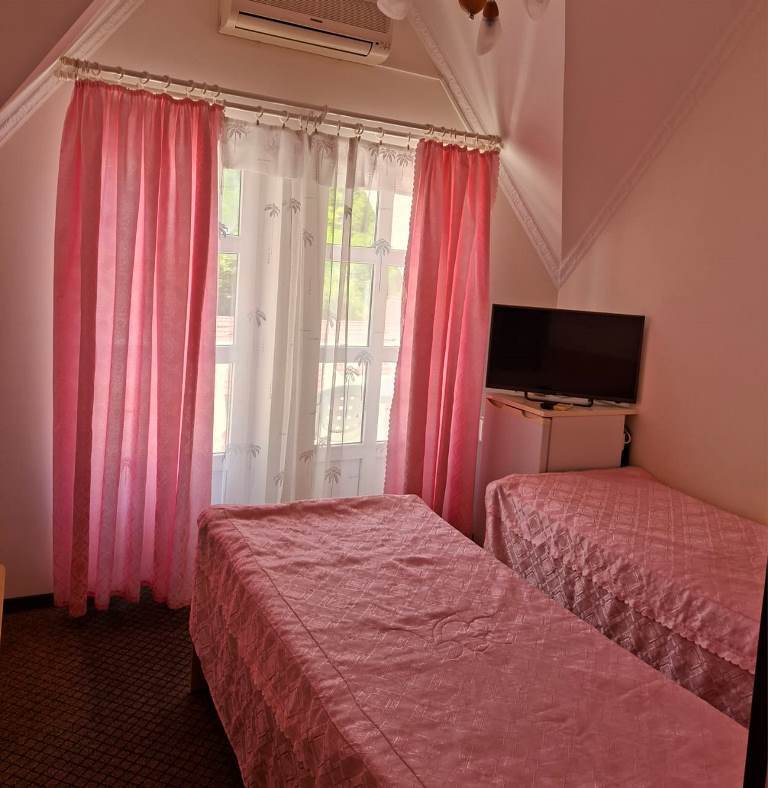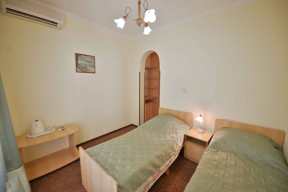 Отельный комплекс занимает закрытую территорию площадью 1 гектар, расположенную в окружении гор и хвойного леса. Отель включает в себя несколько трехэтажных белоснежных корпусов с башенками по центру фасадов. Жилой фонд, рассчитанный на 150 мест, предлагает отдыхающим комфортабельные номера с удобствами. Комнаты оформлены в светлых тонах, везде есть санузел и душ, кондиционер, электрочайник, фен, телевизор.