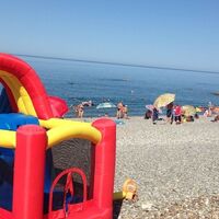На поселковом пляже все предусмотрено для комфортного отдыха: пологий спуск в море, есть кабинки для переодевания, работает пункт проката шезлонгов и зонтиков, установлены бунгало и теневые навесы, много водных развлечений и аттракционов.