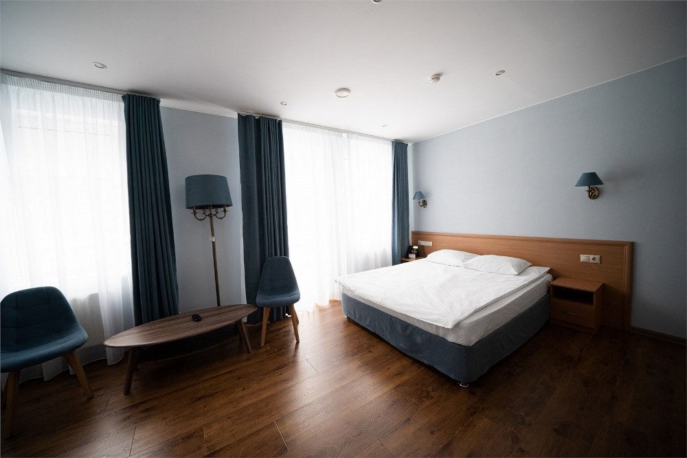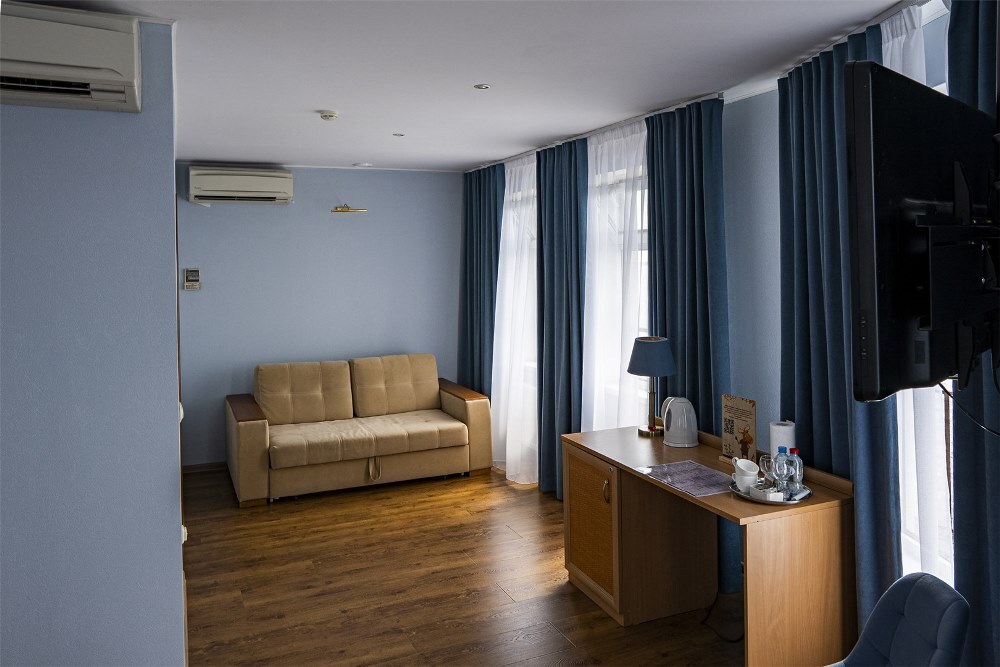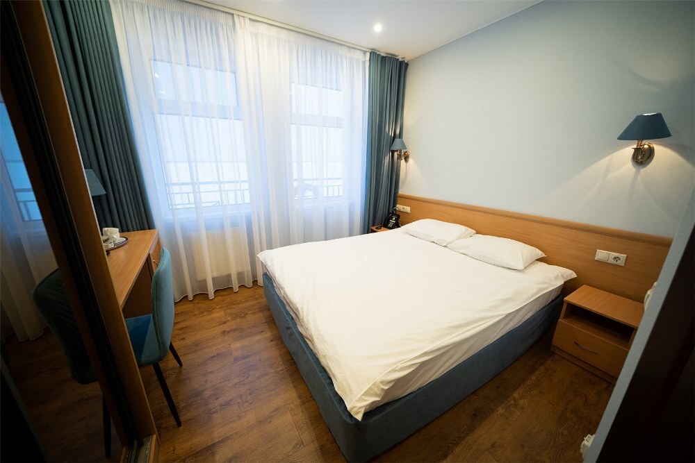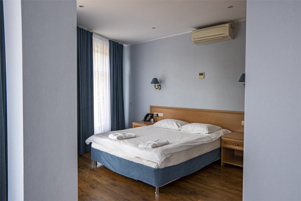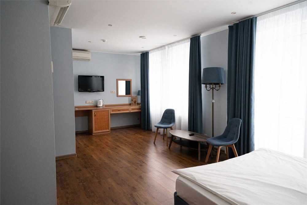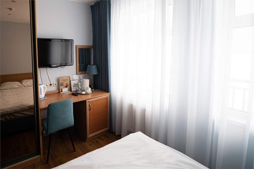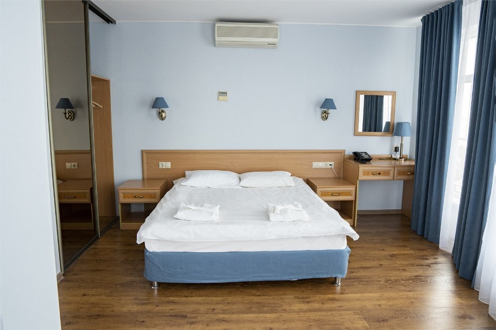 В гостиничном номере есть все, что необходимо — письменный стол, телевизоры, телефон, индивидуальный сейф, мини-бар косметические принадлежности.