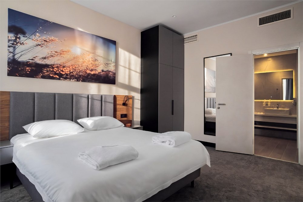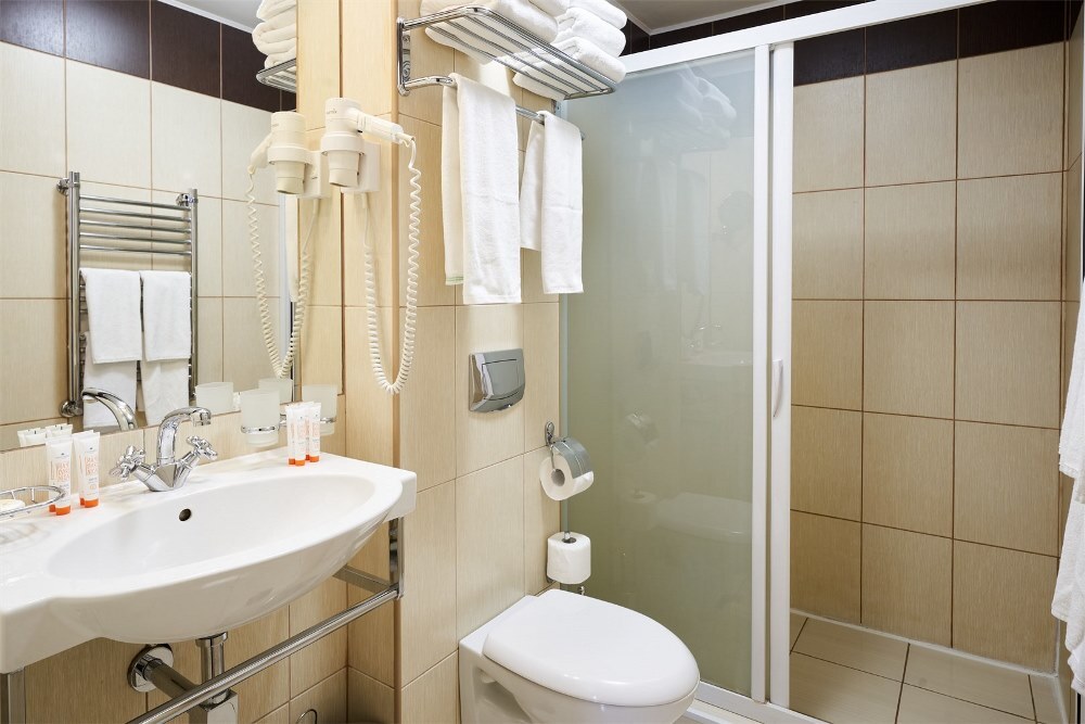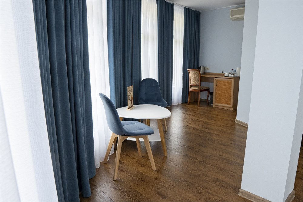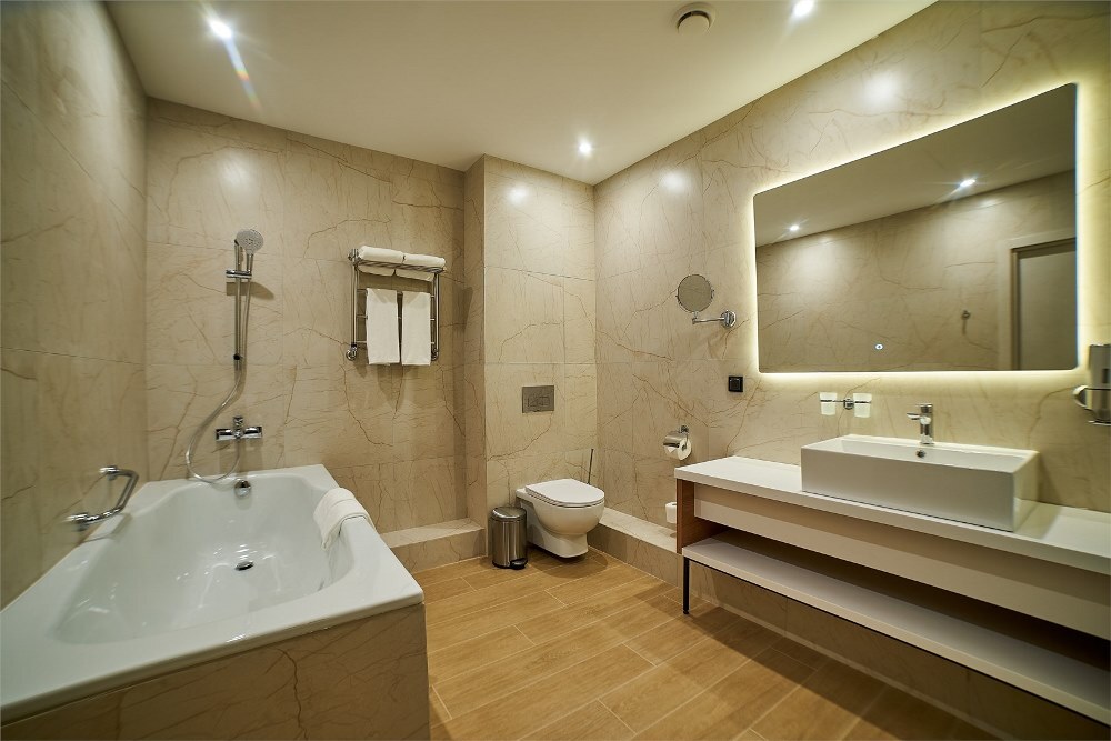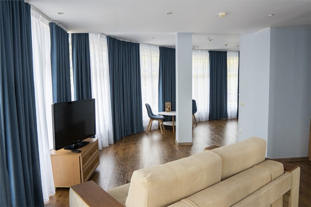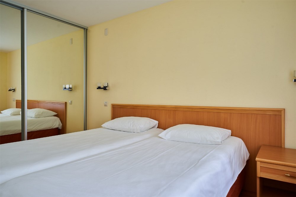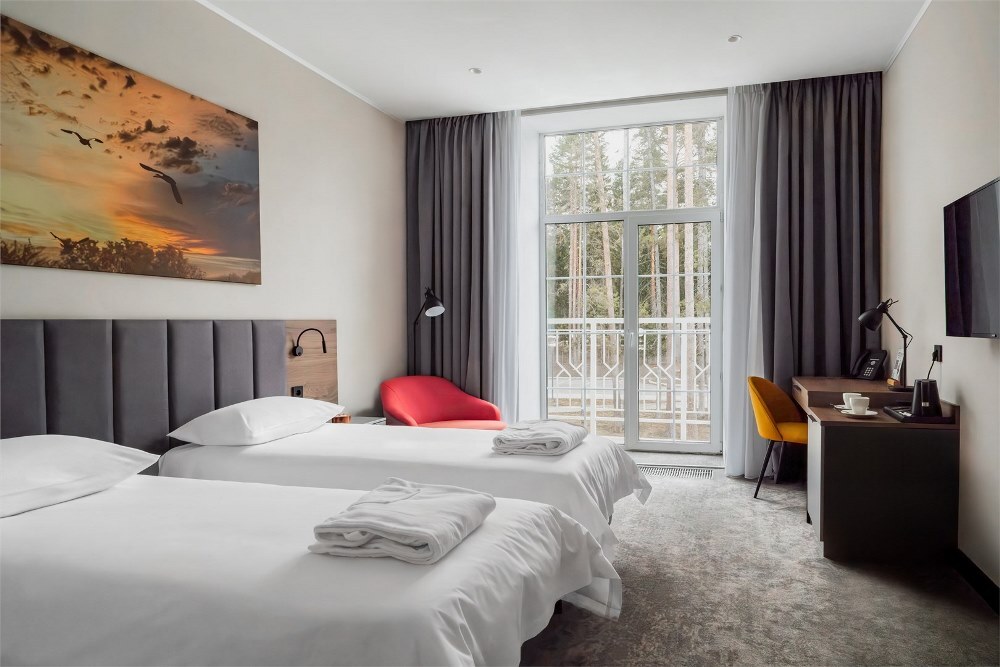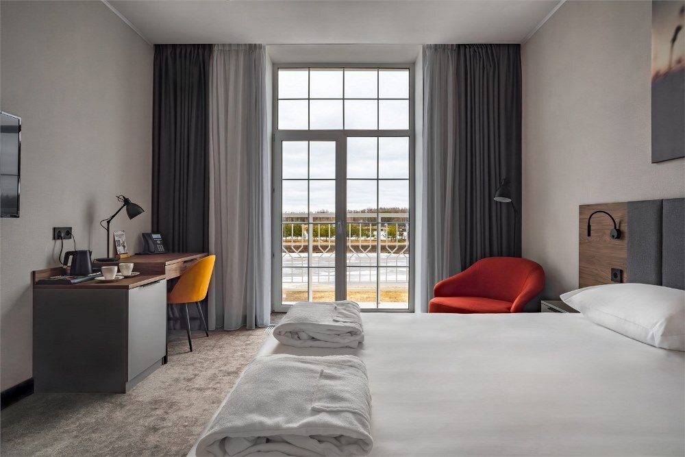 В гостиничном номере есть все, что необходимо — письменный стол, телевизоры, телефон, индивидуальный сейф, мини-бар косметические принадлежности.
