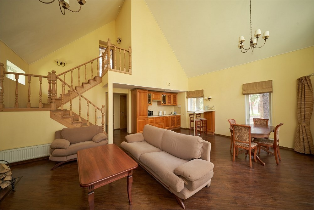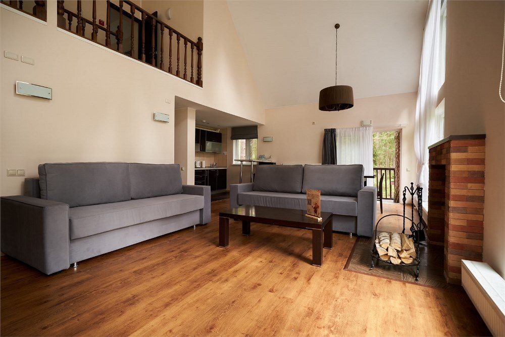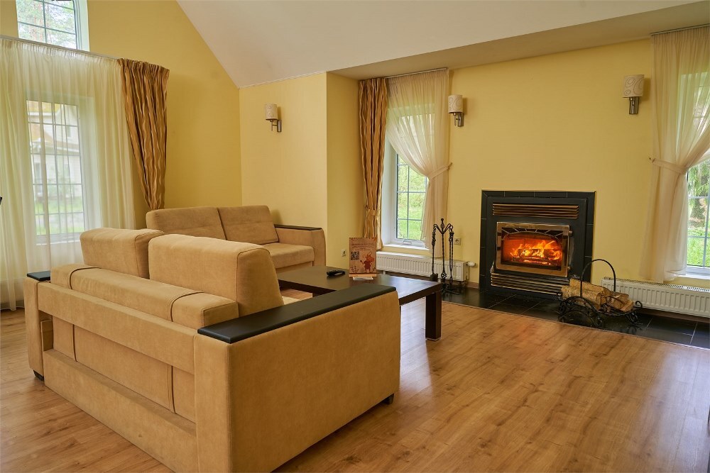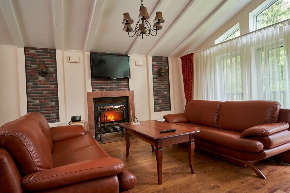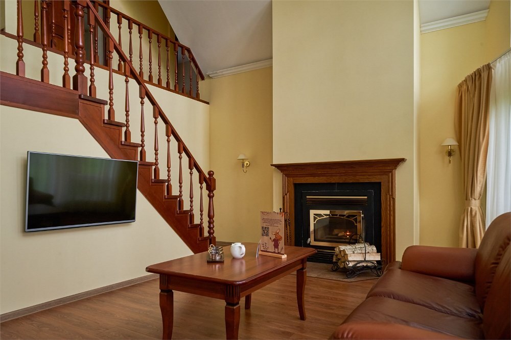 В каждом коттедже 2 или 3 спальни, кухня-столовая с комплектом посуды, холодильником и посудомоечной машиной, гостиная с камином, площадка барбекю на придомовой территории, в некоторых коттеджах — мини-сауны и ванны с гидромассажем. Гостям предоставляются бесплатные парковка и работающий на всей территории Парк-Отеля Wi-Fi.