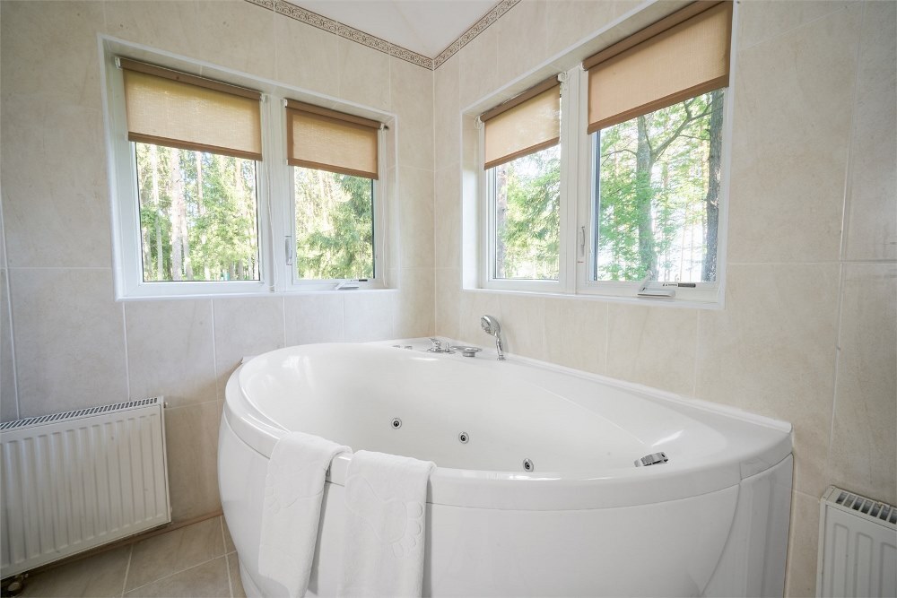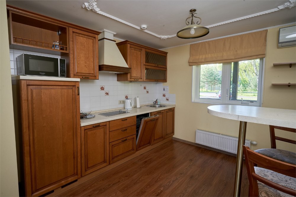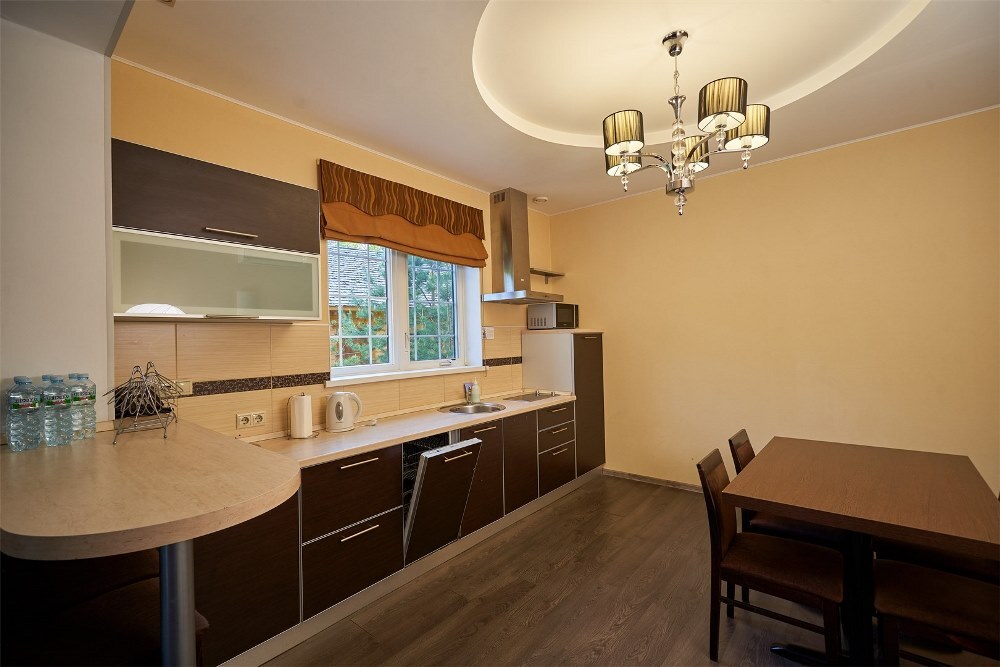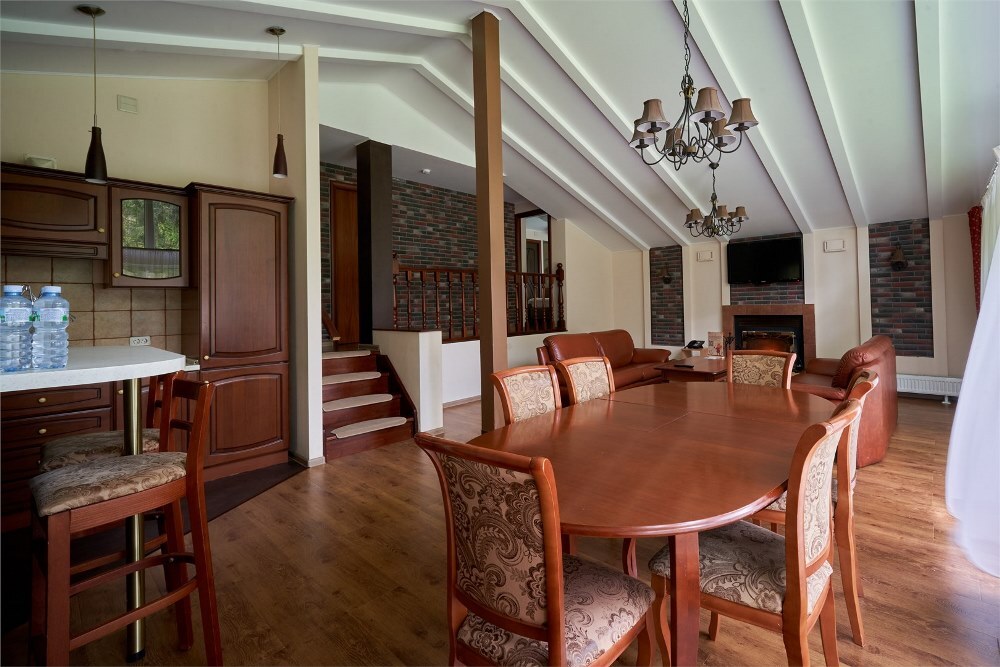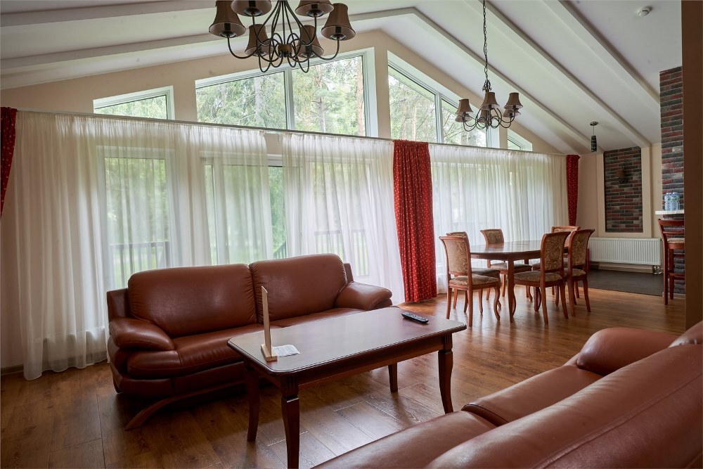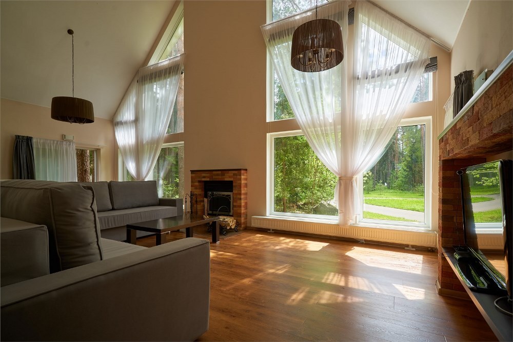 В каждом коттедже 2 или 3 спальни, кухня-столовая с комплектом посуды, холодильником и посудомоечной машиной, гостиная с камином, площадка барбекю на придомовой территории, в некоторых коттеджах — мини-сауны и ванны с гидромассажем. Гостям предоставляются бесплатные парковка и работающий на всей территории Парк-Отеля Wi-Fi.