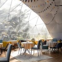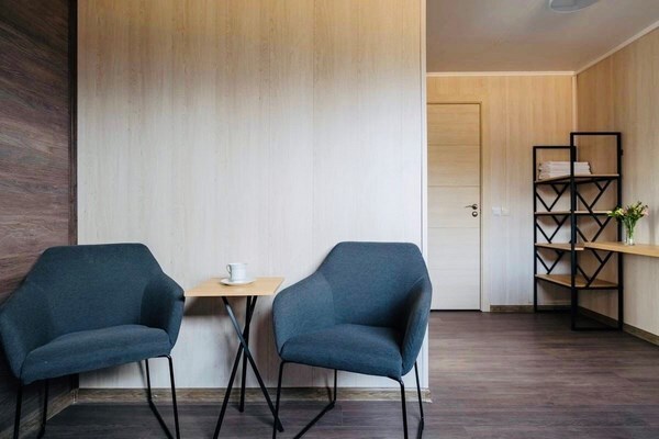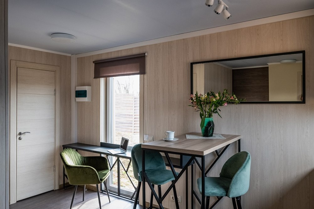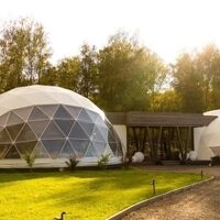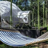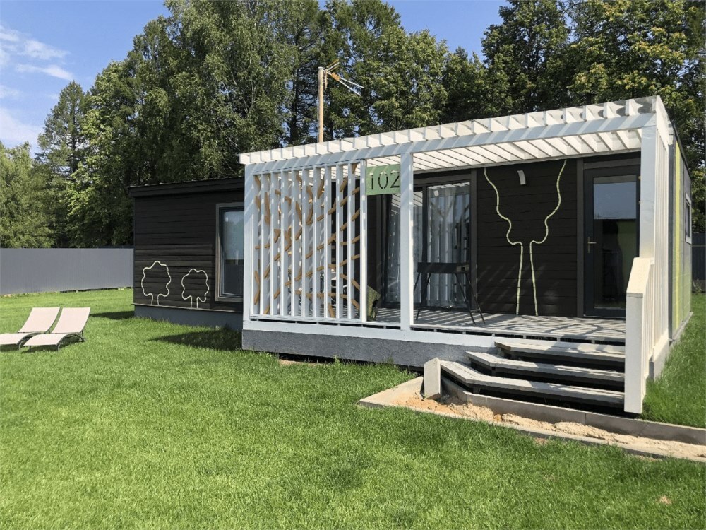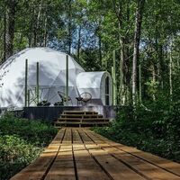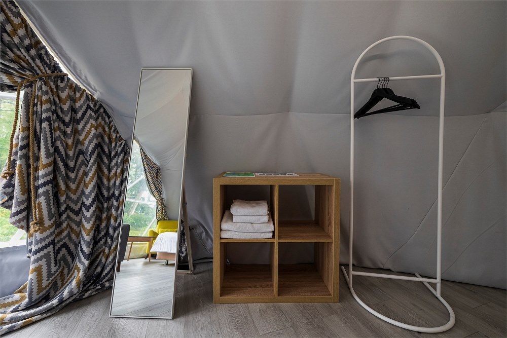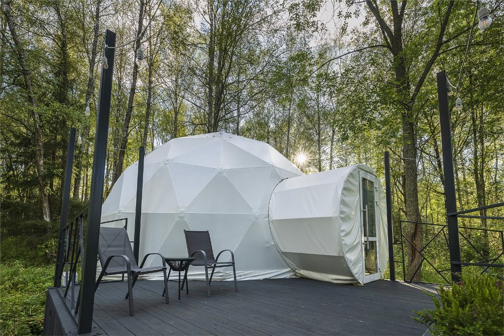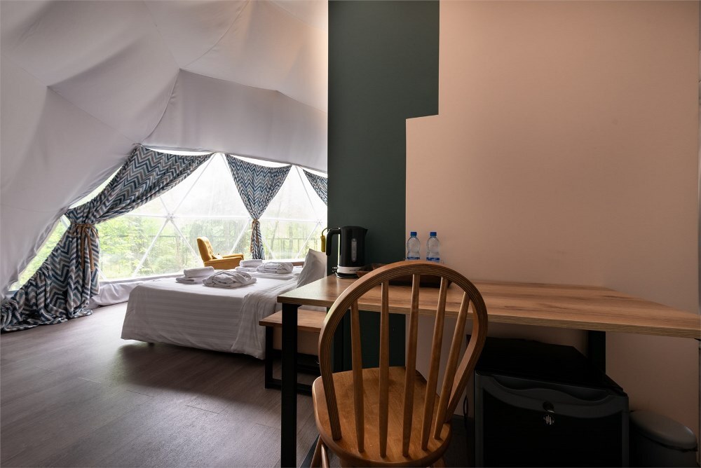 Гостям предлагается размещение в таунхаусах и купольных глэмпах. В домиках предусмотрены: уютная гостиная, спальня, в которой хочется провести все выходные, удобная ванная комната, и большая терраса, где можно насладиться чашечкой кофе. В каждом куполе есть душ с горячей водой и уборной, а также тапочки, махровые полотенца, халаты, средства для ванной. Особенный комфорт создают полы с подогревом, как в комнате, так и в ванной. Кроме внутреннего уюта, каждый купол имеет свою собственную веранду с удобной мебелью — столиком и стульями, чтобы встречать теплые дни на свежем воздухе.
