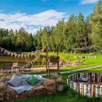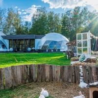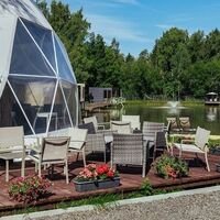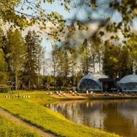На территории комплекса работает ресторан-купол, в котором можно отведать блюда из фермерских продуктов. Возле каждого домика есть мангальная зона. У кострища можно собираться друзьями и приятно проводить вечера. Также для отдыха и рыбалки предусмотрен домик рыбака. Гостям предлагается посетить финскую сауну, панорамные окна которой выходят на водную гладь пруда.
