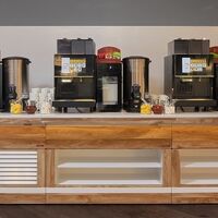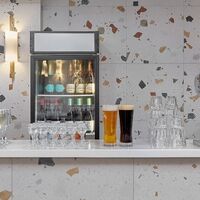 В номере: Холодильник, Мини-бар, Набор одноразовой косметики, Посуда, Прикроватная тумбочка, Стол, Стул/Стулья, Телевизор, Телефон, Туалетные принадлежности, Фен, Душ, Зе ...