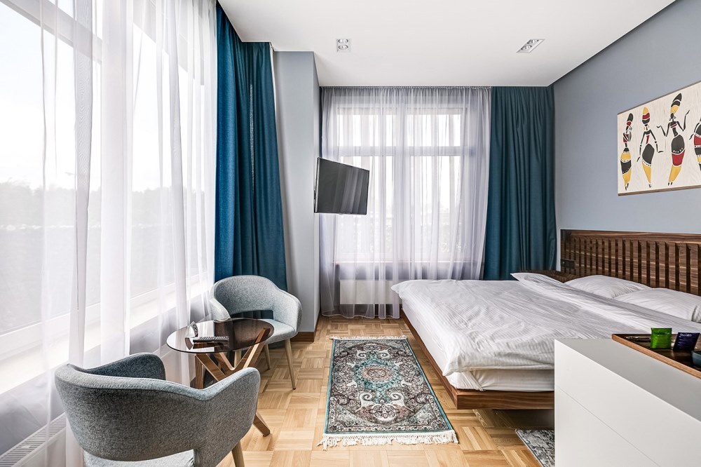 Гости могут разместиться в комфортабельных номерах премиум-класса, расположенных в современном трехэтажном корпусе отеля. Все интерьеры оформлены ведущими мировыми дизайнерами. В номерах все предусмотрено для хорошего отдыха — есть плазменный телевизор, капсульная кофемашина, небольшой холодильник, высокоскоростной интернет. В ванных комнатах гостей ожидают мягкие халаты, тапочки, косметические наборы.