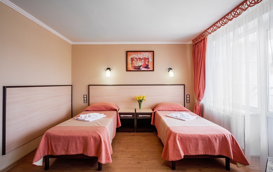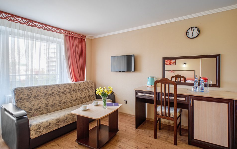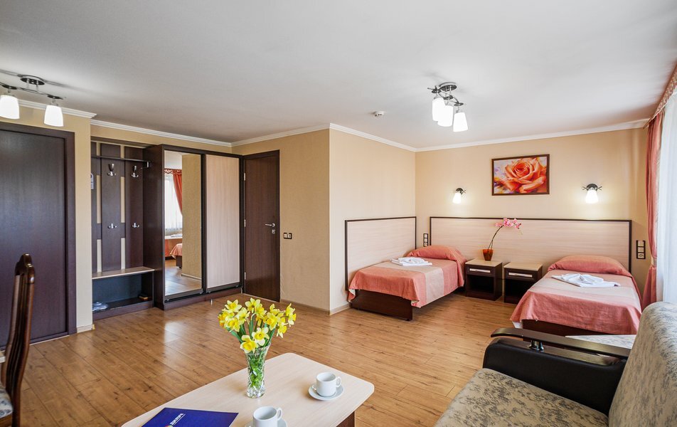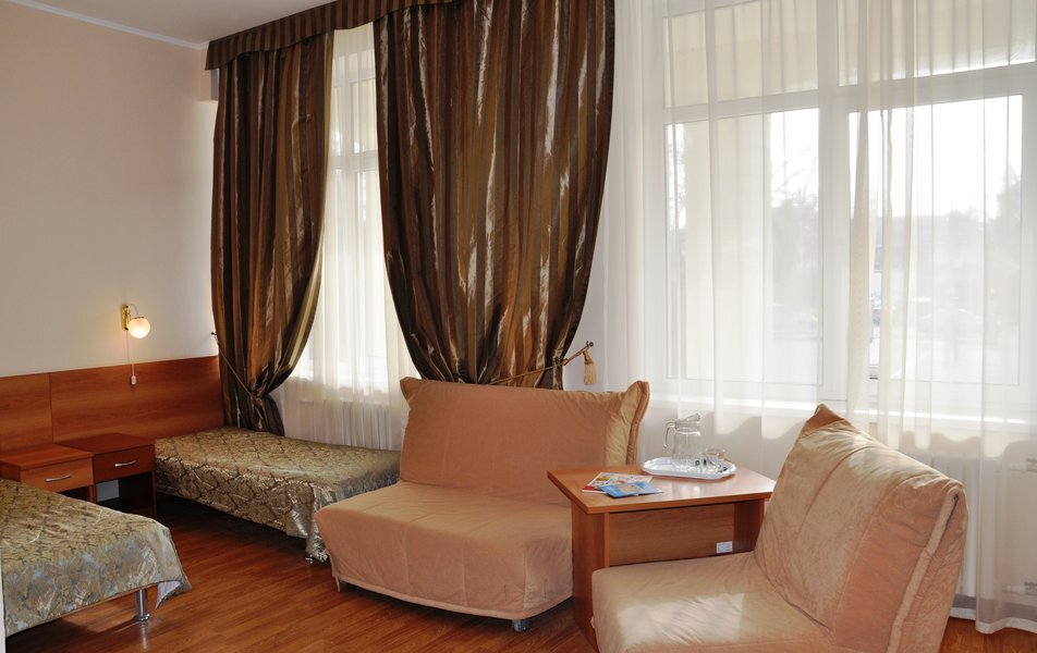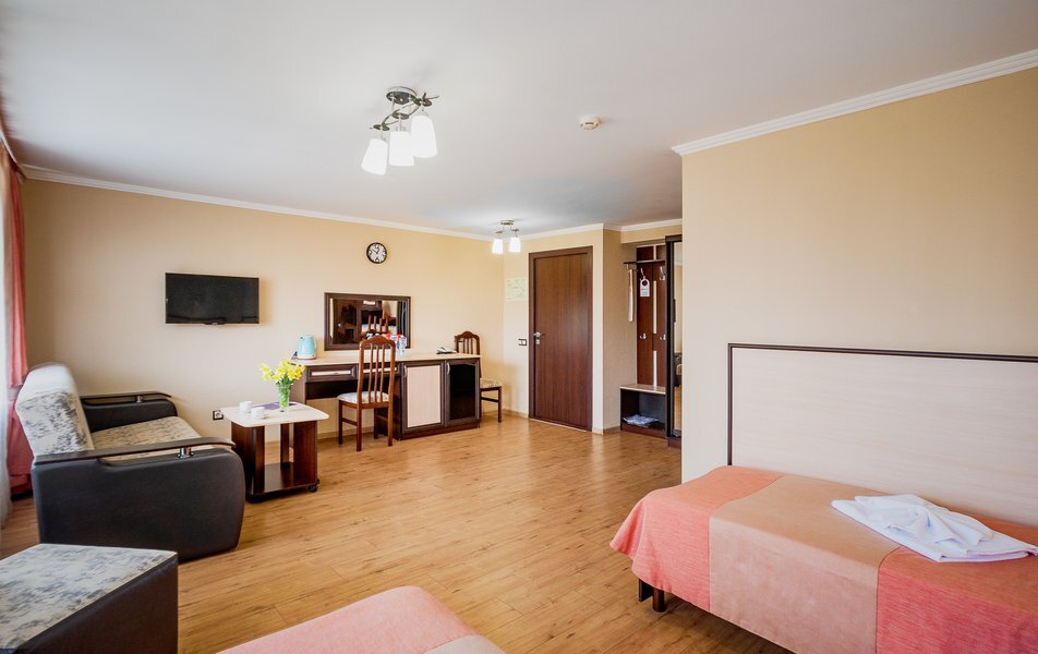 Комплекс санатория включает в себя спальные корпуса, лечебно-диагностический центр, столовые-диет питания, Акватермальный СПА- комплекс. Номера первой категории имеют санузлы с ванной или душем, укомплектованные туалетными принадлежностями. Каждый номер кроме удобной меблировки обеспечен необходимыми бытовыми приборами: сплит-системой, холодильником, телевизором и телефоном. Wi-Fi доступен на всей территории.