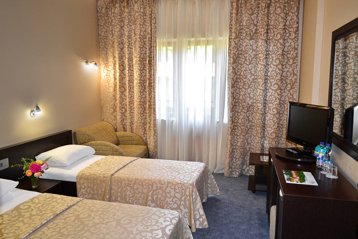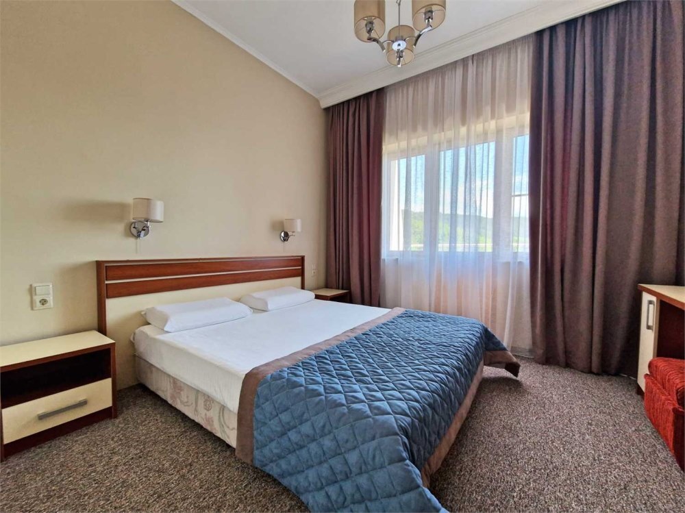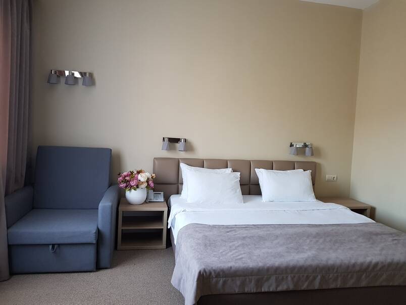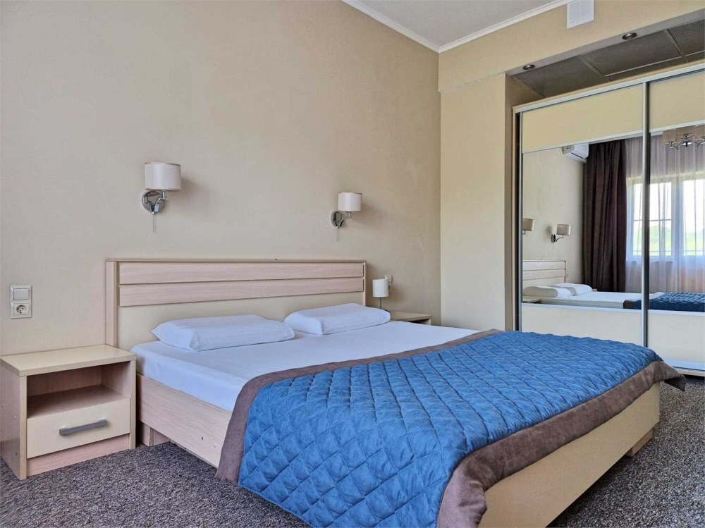 В санатории организовано трехразовое комплексное питание по типу «шведский стол». Разнообразная инфраструктура санатория включает: крытый и открытый бассейны, многофункциональный спортивный зал, универсальную спортивную площадку, тренажерный зал, конференц-зал, бизнес-центр, массажный кабинет, экскурсионное бюро, охраняемую парковку.