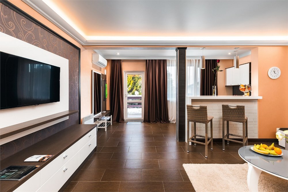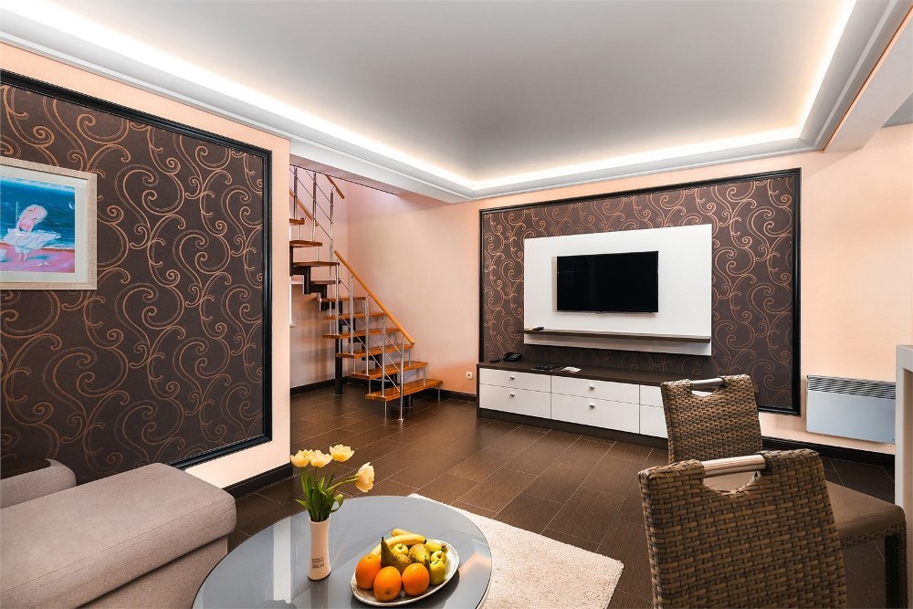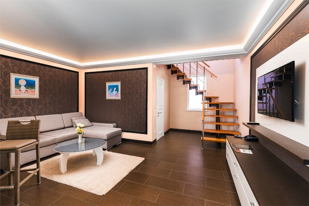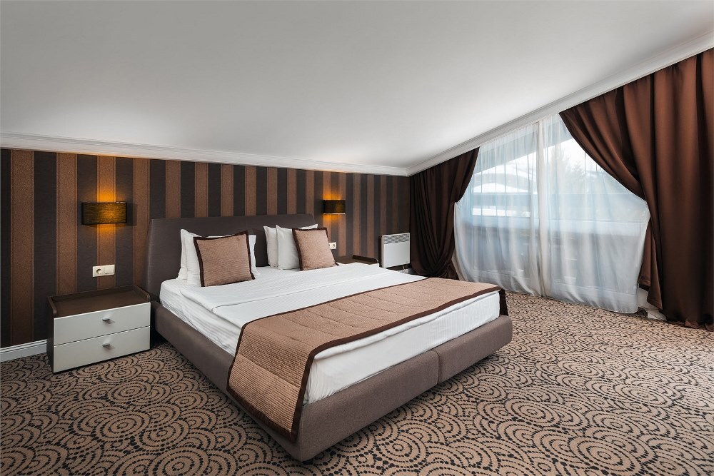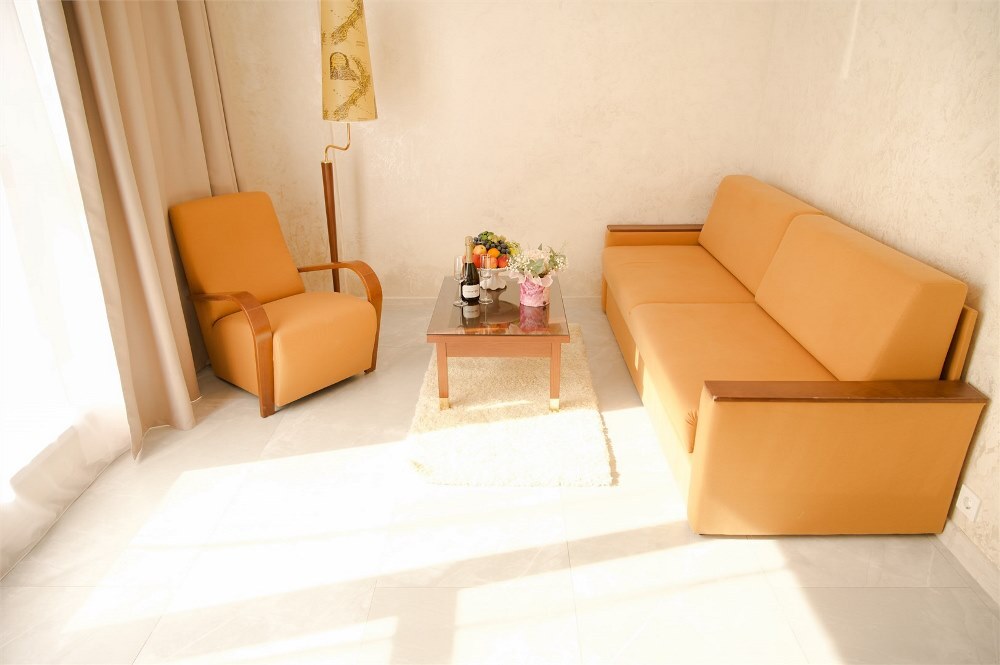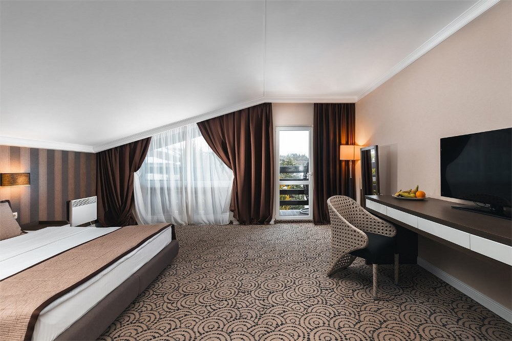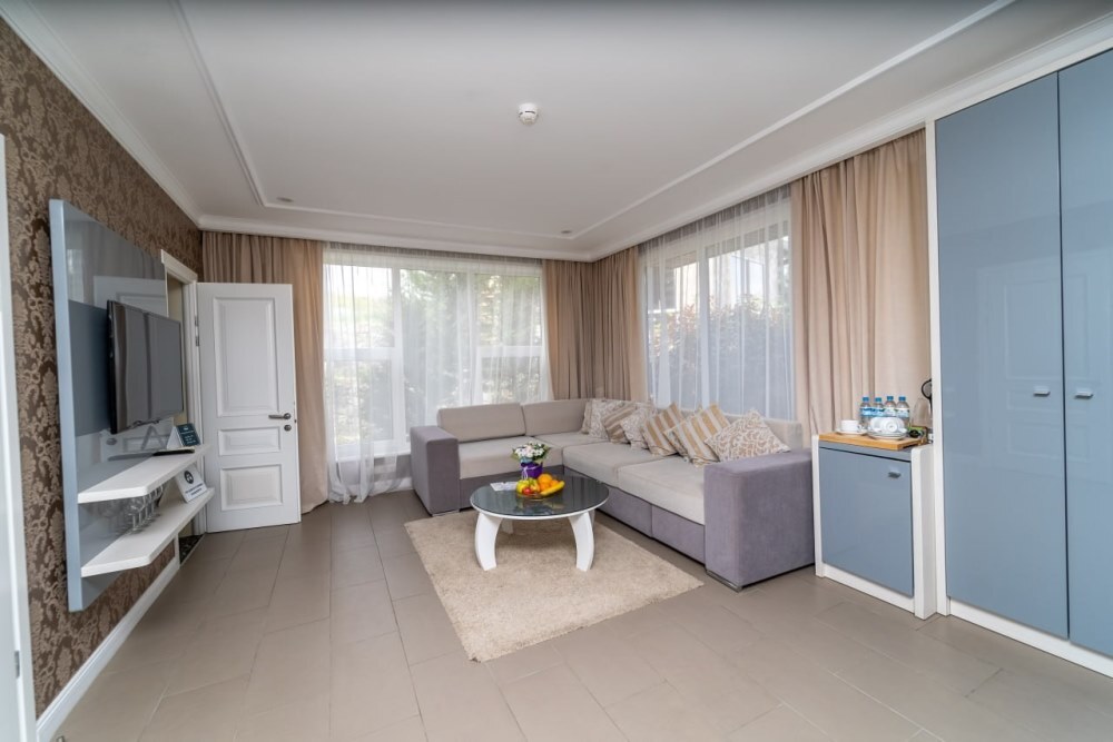 Отель занимает зеленую территорию, окруженную плодовыми деревьями: растут яблони, груши, персики, виноград. Для размещения гостям предлагаются двухэтажные виллы с каменными террасами, а также номера в гостевом корпусе. На виллах предусмотрена мини-кухня, есть два санузла, в гостевых номерах – классические интерьеры, оформленные в пастельных оттенках, ест вся необходимая мебель и техника: кондиционер, телевизор-ЖК, электрочайник, мини-холодильник, фен. В ванной комнате подготовлены косметические наборы, халаты и тапочки для гостей.