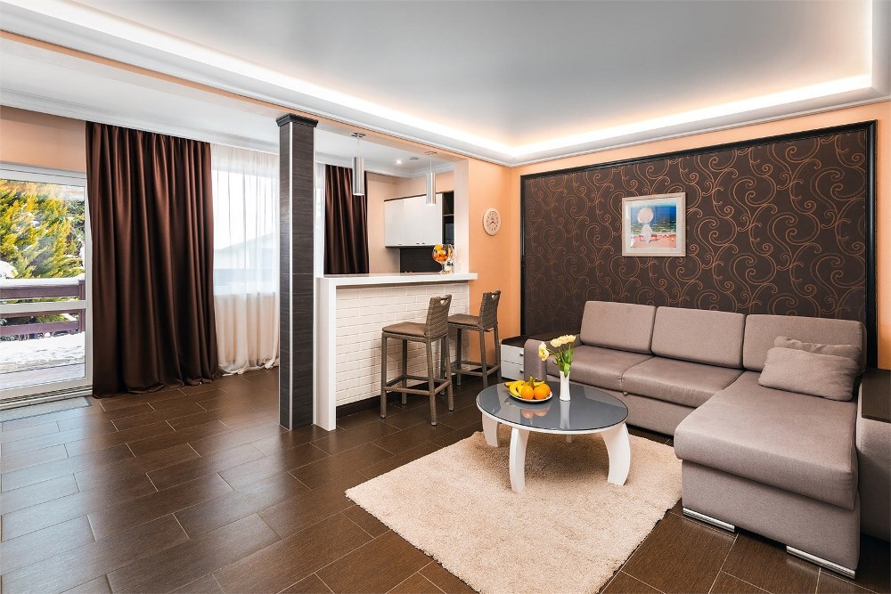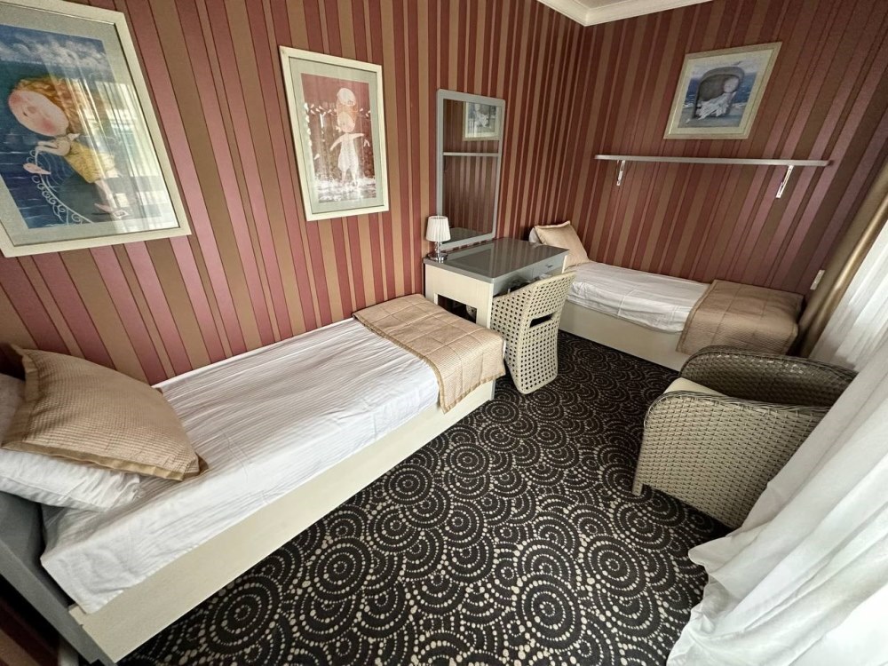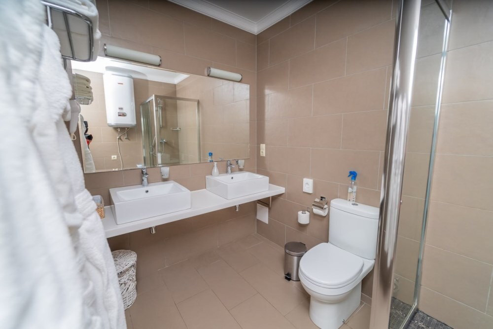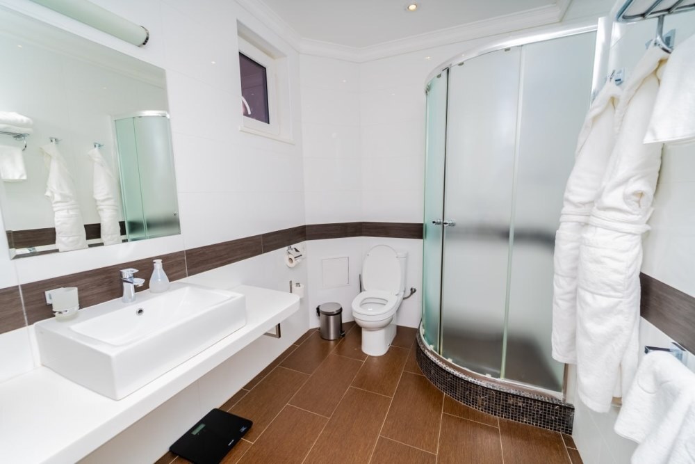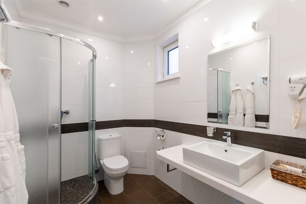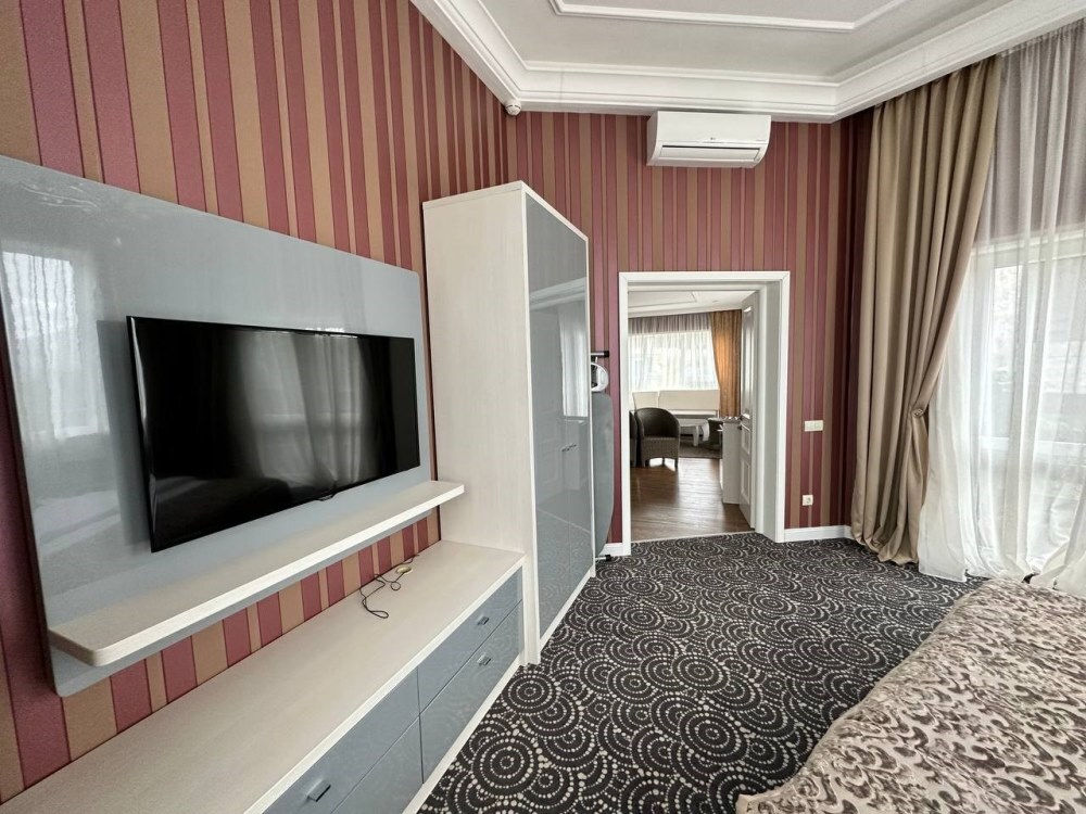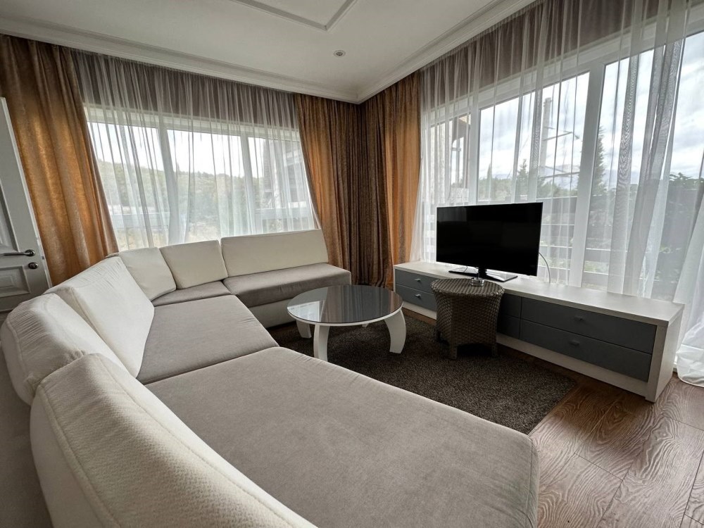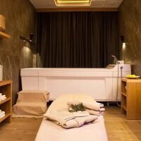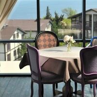 На территории работает ресторан, к услугам отдыхающих – подогреваемый открытый бассейн с зоной отдыха рядом, банный комплекс с римскими термами, русской баней, хаммамом и финской сауной. Любители спорта оценят тренажерный зал, вечерний досуг скрасят анимационные программы и показы кинофильмов, а дети весело проведут время в детском клубе или на игровой площадке с батутом, а за малышами присмотрят воспитатели.